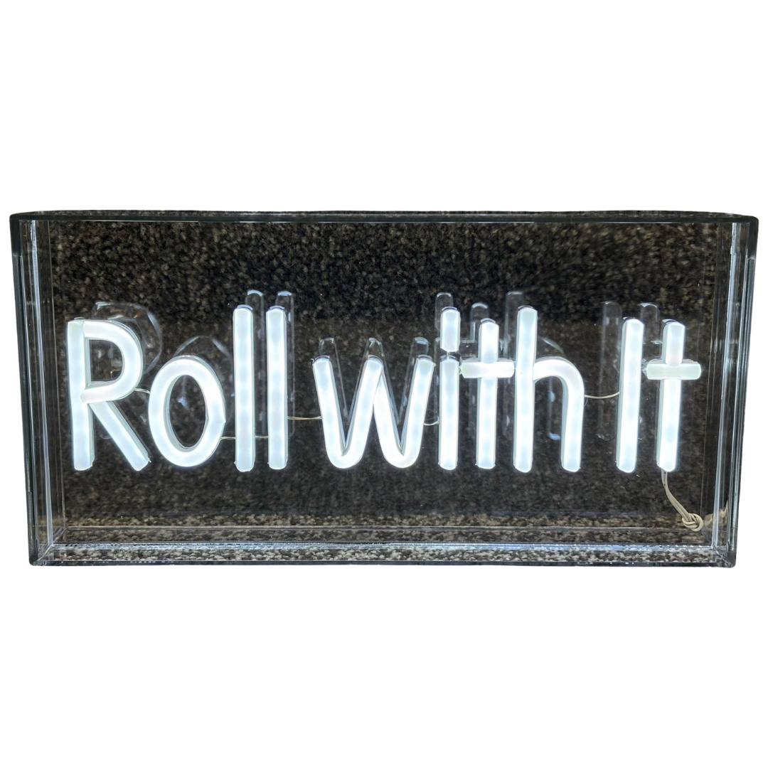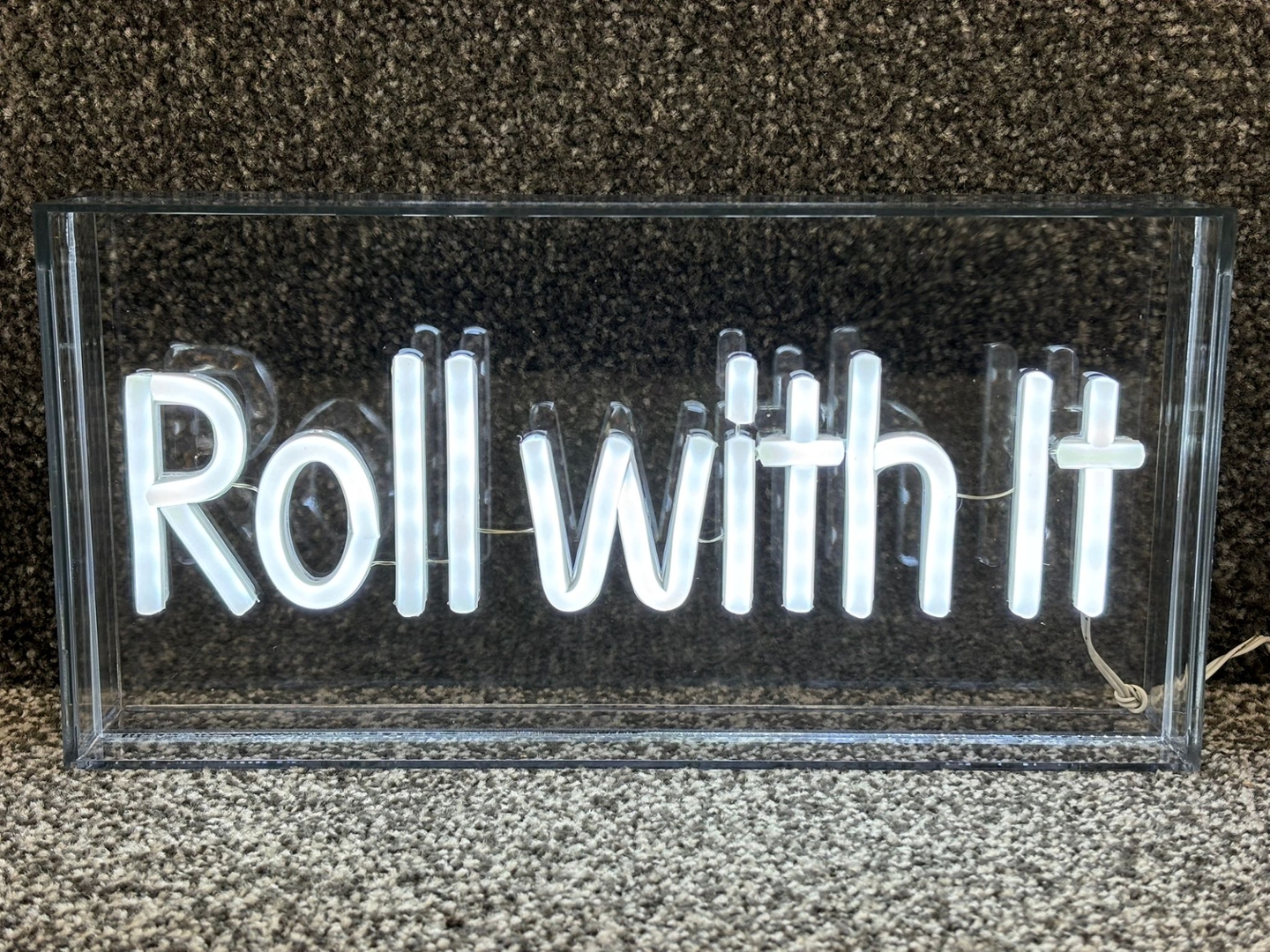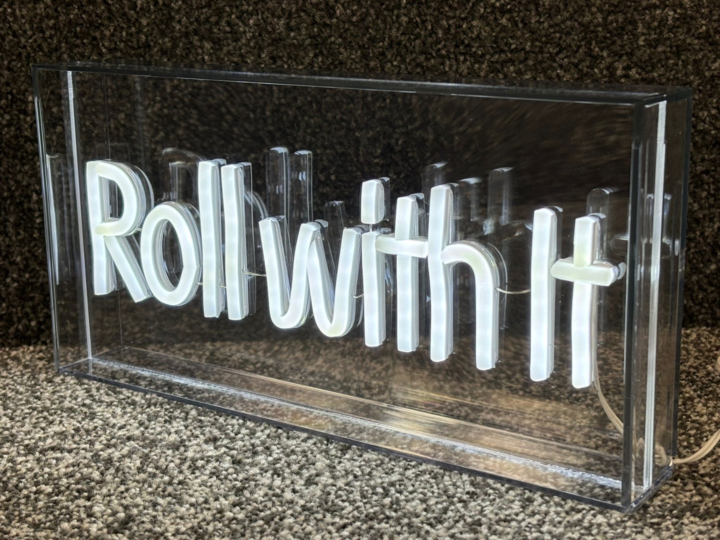 An Oasis LED Table Top/Wall Plaque titled Roll With It. Approximately 15cm height, 30cm width.