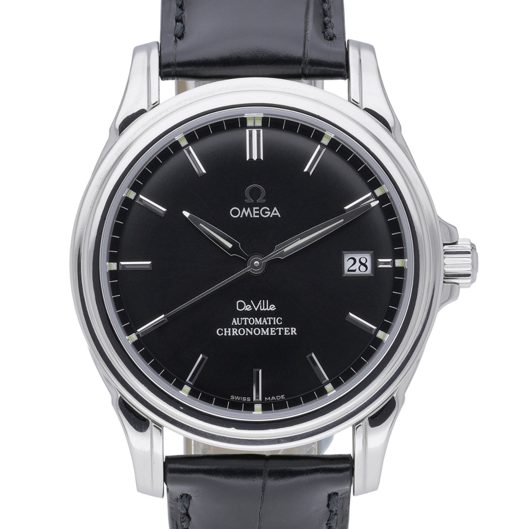 An Omega De Ville Co-Axial Watch, paired with a sleek black leather strap and completed by a stainless steel case and clasp on a striking black dial. Model 4831.50.31 from 2002: a classically styled De Ville that showcases Omega’s celebrated Co-Axial technology — a milestone movement known for its enhanced precision and long-term performance.