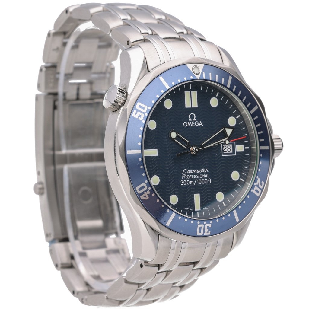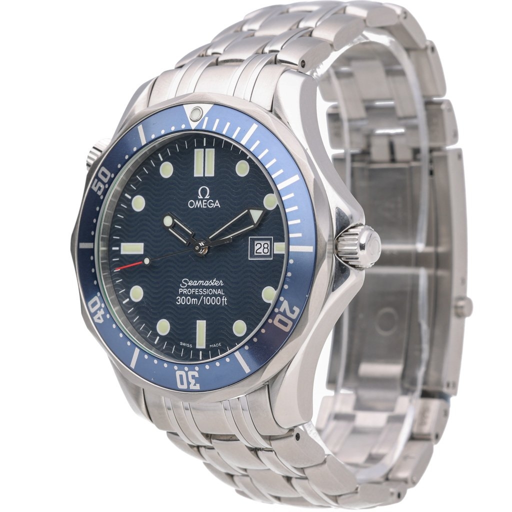 An Omega Seamaster 300M Watch that has become one of the most recognisable and culturally significant dive watches, this reference 2541.80.00 represents the exact quartz configuration famously associated with the early James Bond era. With its stainless steel build, blue bezel and signature blue wave dial, it embodies the design language that helped cement the Seamaster 300M as a modern icon. For collectors, the quartz variant offers a direct link to the original 1990s production run.