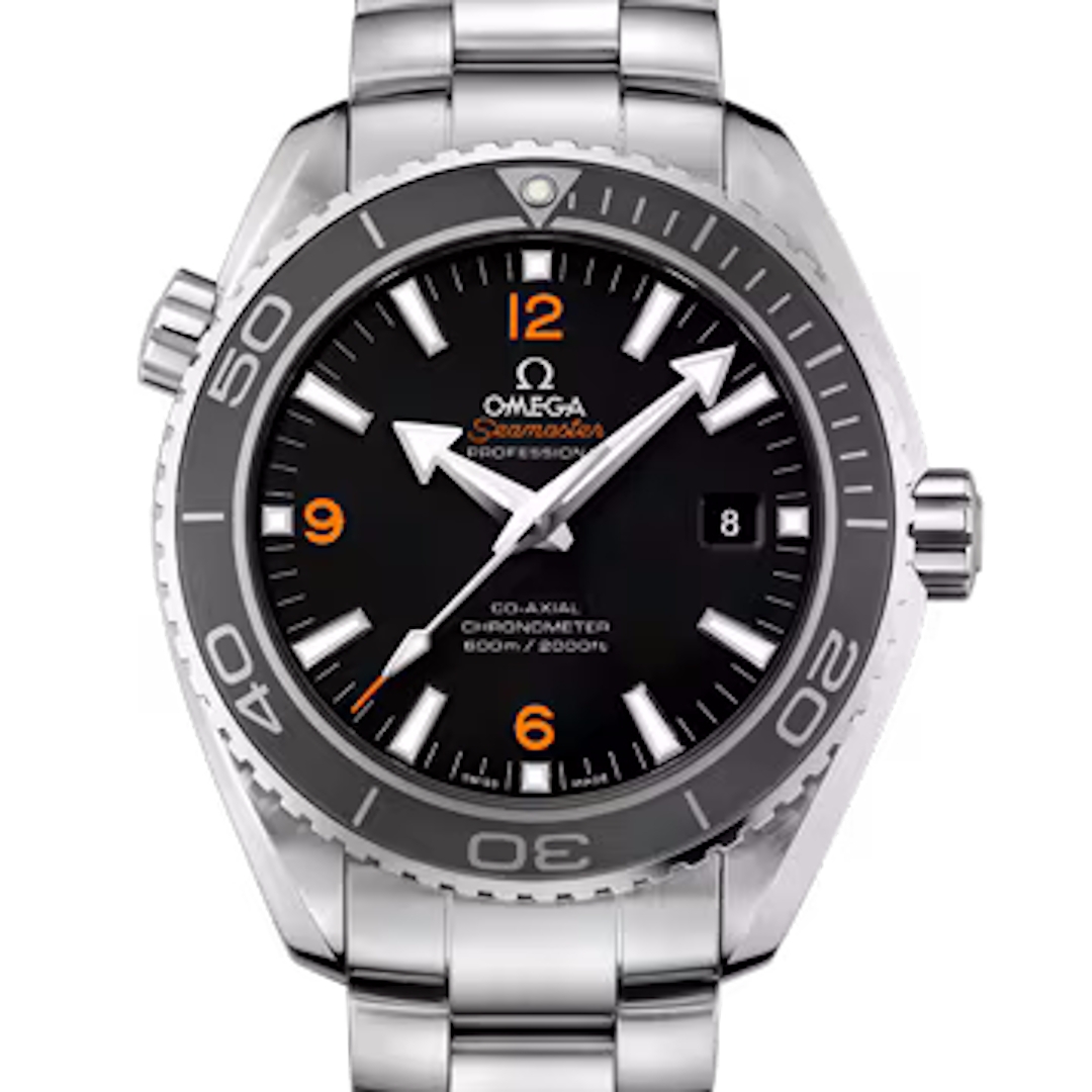 An Omega Seamaster Planet Ocean 600M delivers the bold, unmistakable presence that has made the Planet Ocean one of Omega’s most sought-after modern dive watches. Crafted in robust stainless steel and paired with a deep black ceramic bezel and matching dial, it offers a striking, high-contrast aesthetic that feels both technical and luxurious. The signature orange-accented seconds hand and crisp applied markers add sharp visibility, while the broad 45.5mm case gives the watch an undeniable wrist presence. This is the tool watch for someone who wants capability, attitude, and instant recognition.