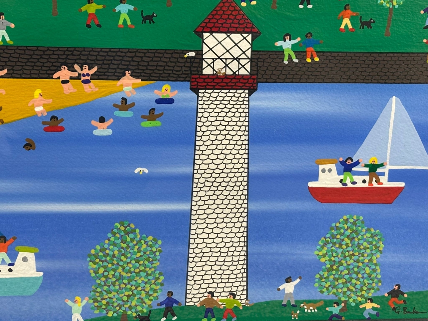 - > Original Oil Painting by the Artist Gordon Barker titled Fun at the City Beach