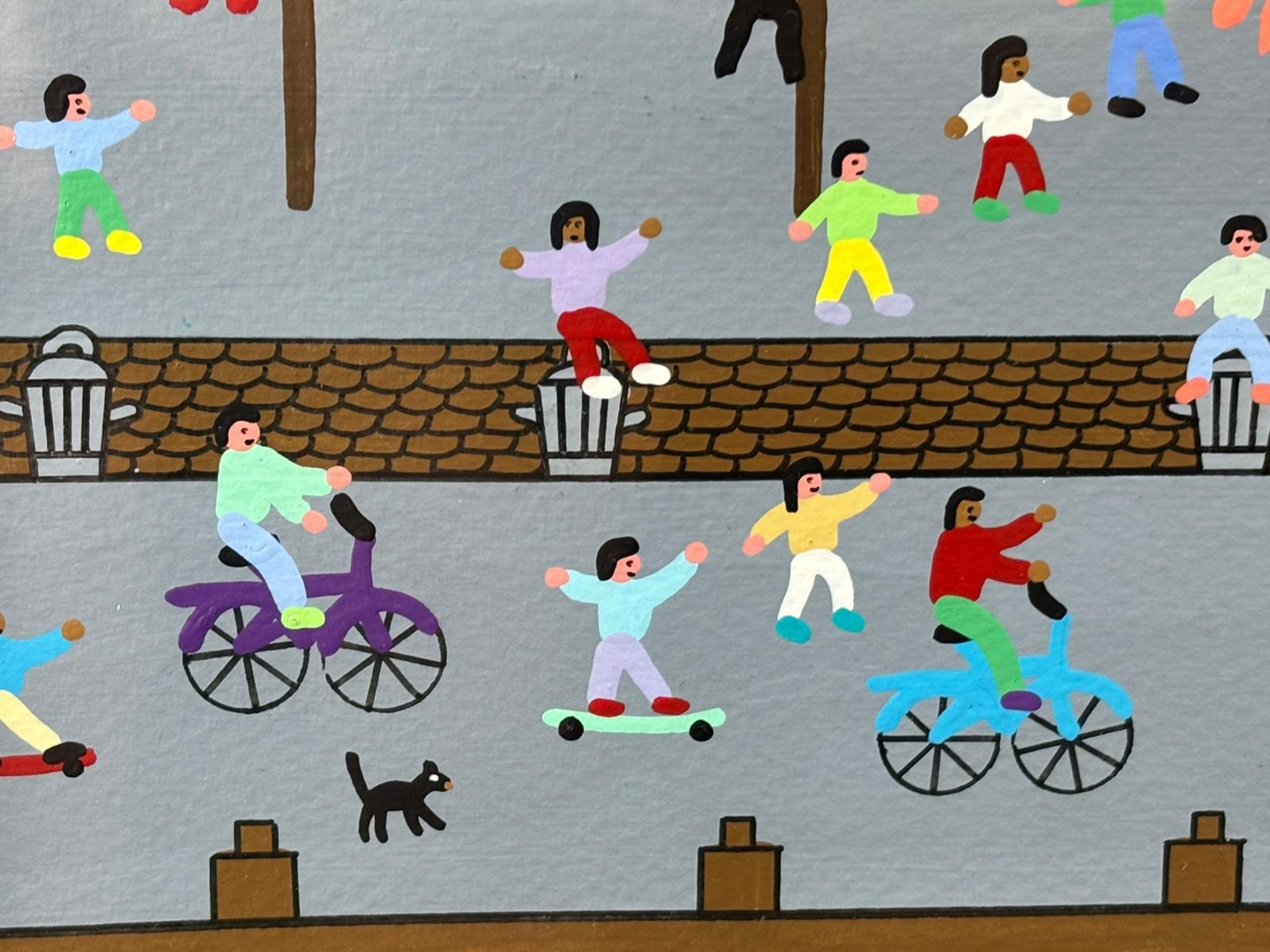 With its playful storytelling and nostalgic warmth, Out In The Streets perfectly encapsulates the spirit of neighbourhood fun and community togetherness. A heartening piece sure to brighten any room with its charm and cheer.