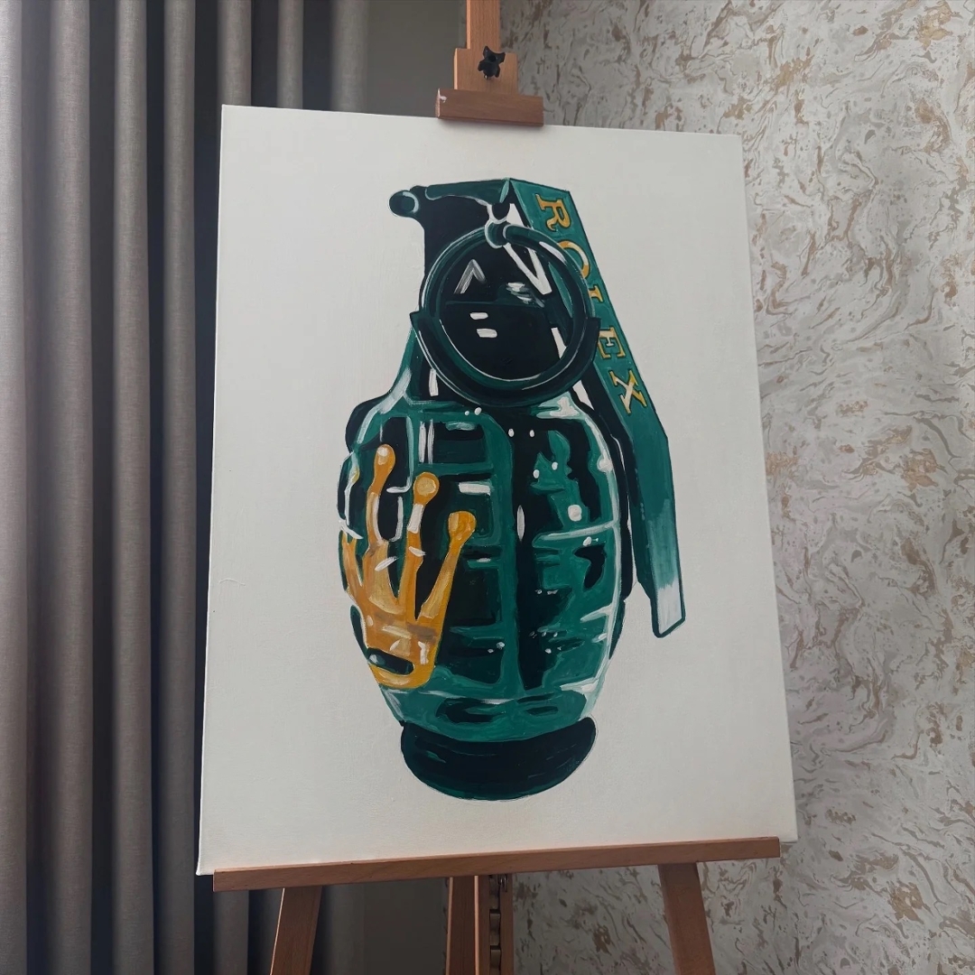 - > Original Painting by the Artist Liam Jacobi a Rolex Grenade.