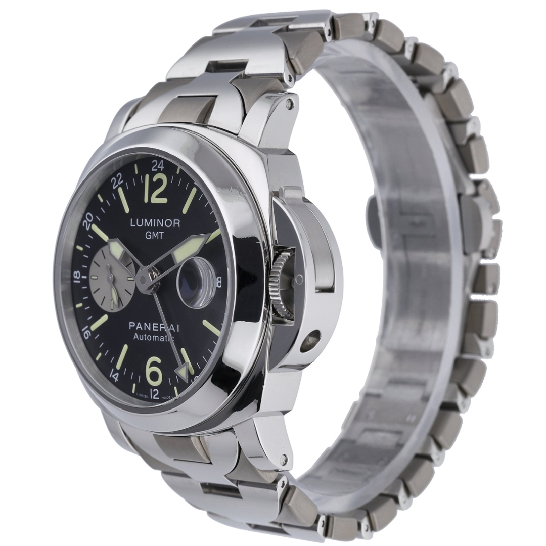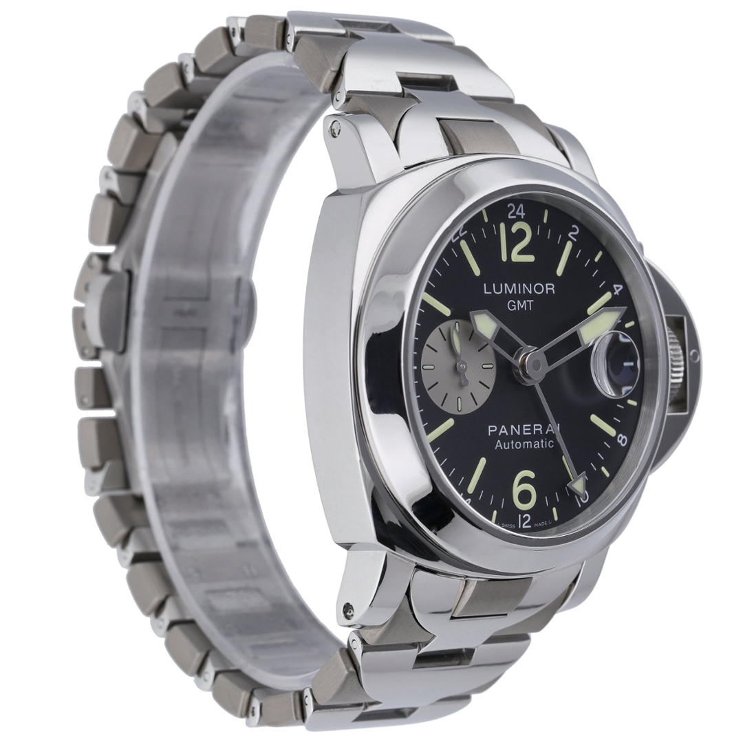 A Panerai Luminor GMT Automatic Watch, Stainless Steel on a Black Dial