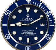 A stainless steel replica Patek Philippe Grand Complications Celestial Moon Age Platinum Blue Wall Clock. Approx 14" height, 14" width.