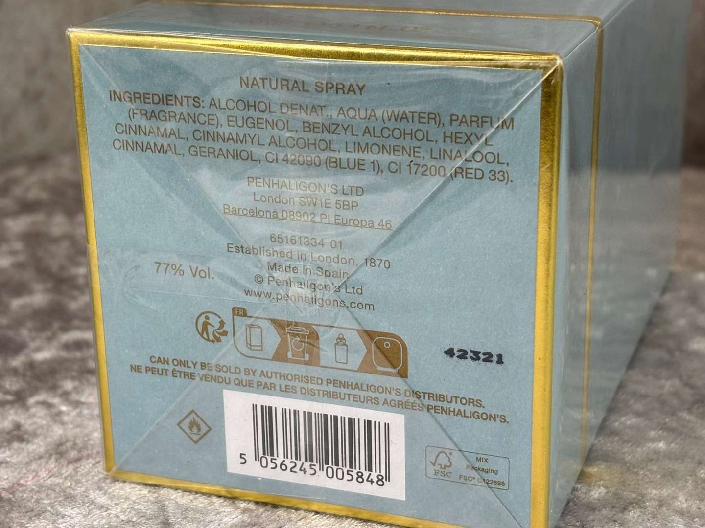 Penhaligon’s signature bottle and supplied in a presentation