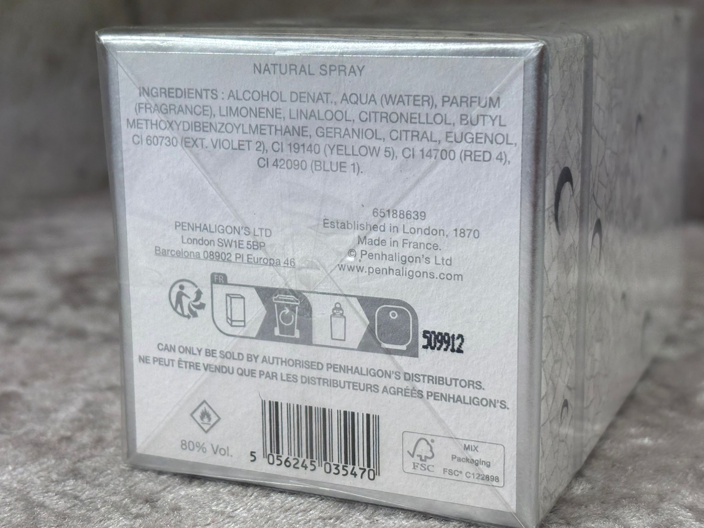 A bottle of Penhaligon's Luna Eau De Toilette in a presentation box.