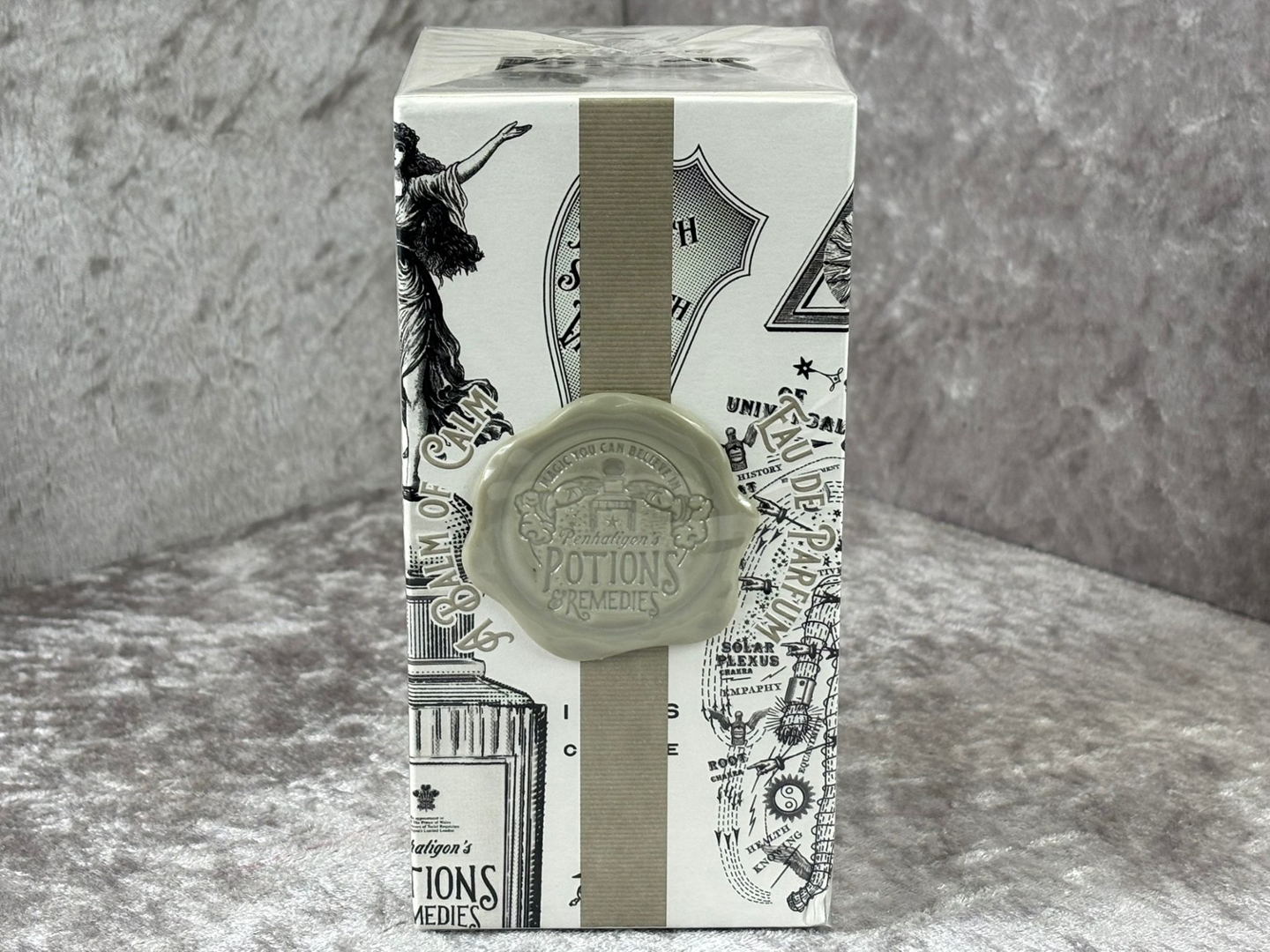 A bottle of Penhaligon's Potions & Remedies A Balm of Calm Eau De Parfum in a presentation box.