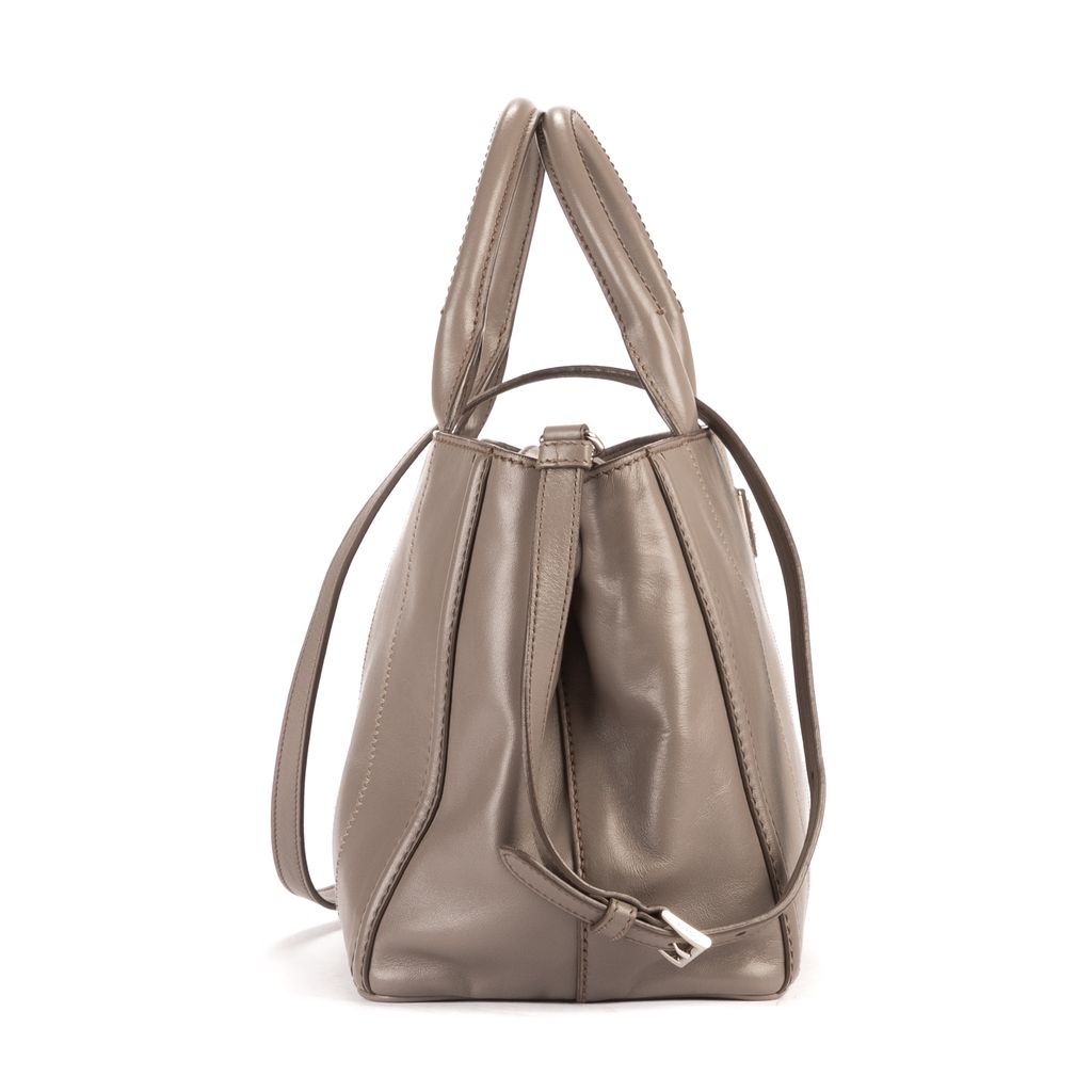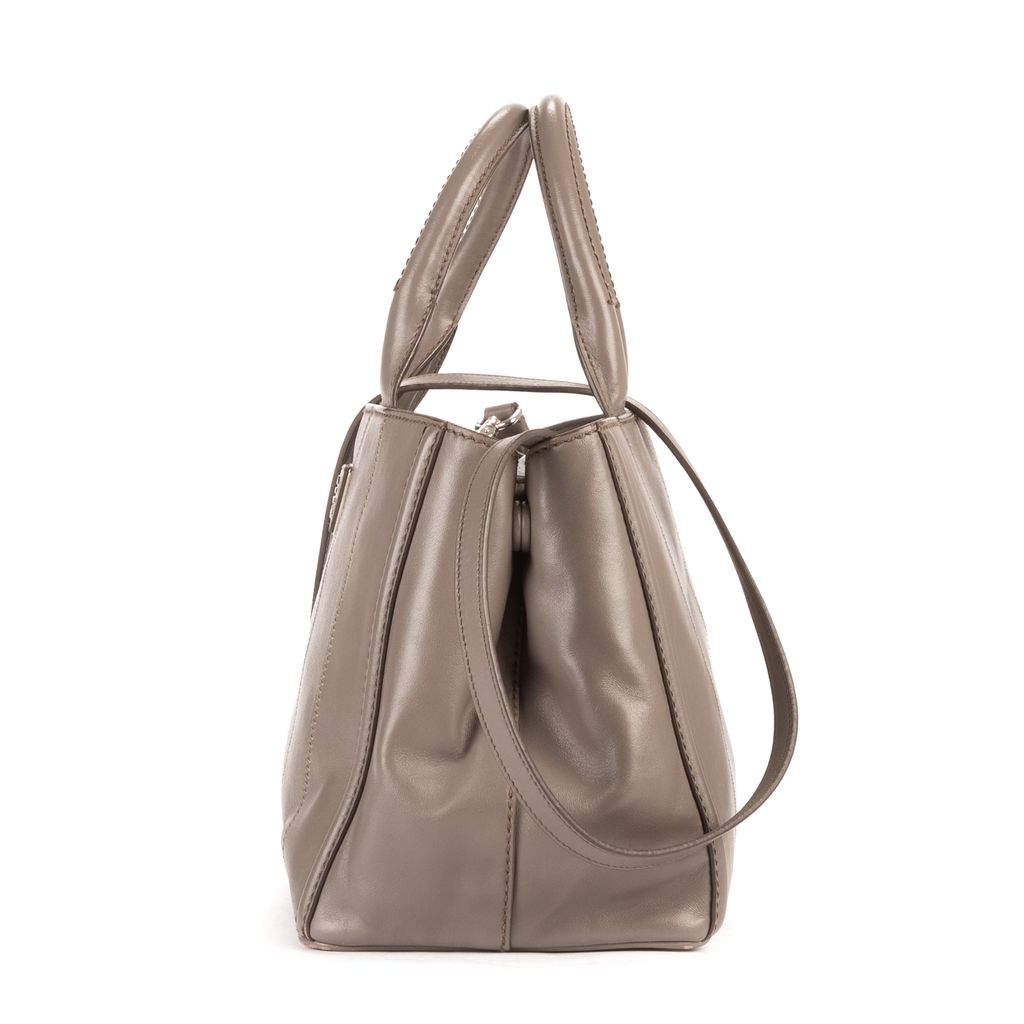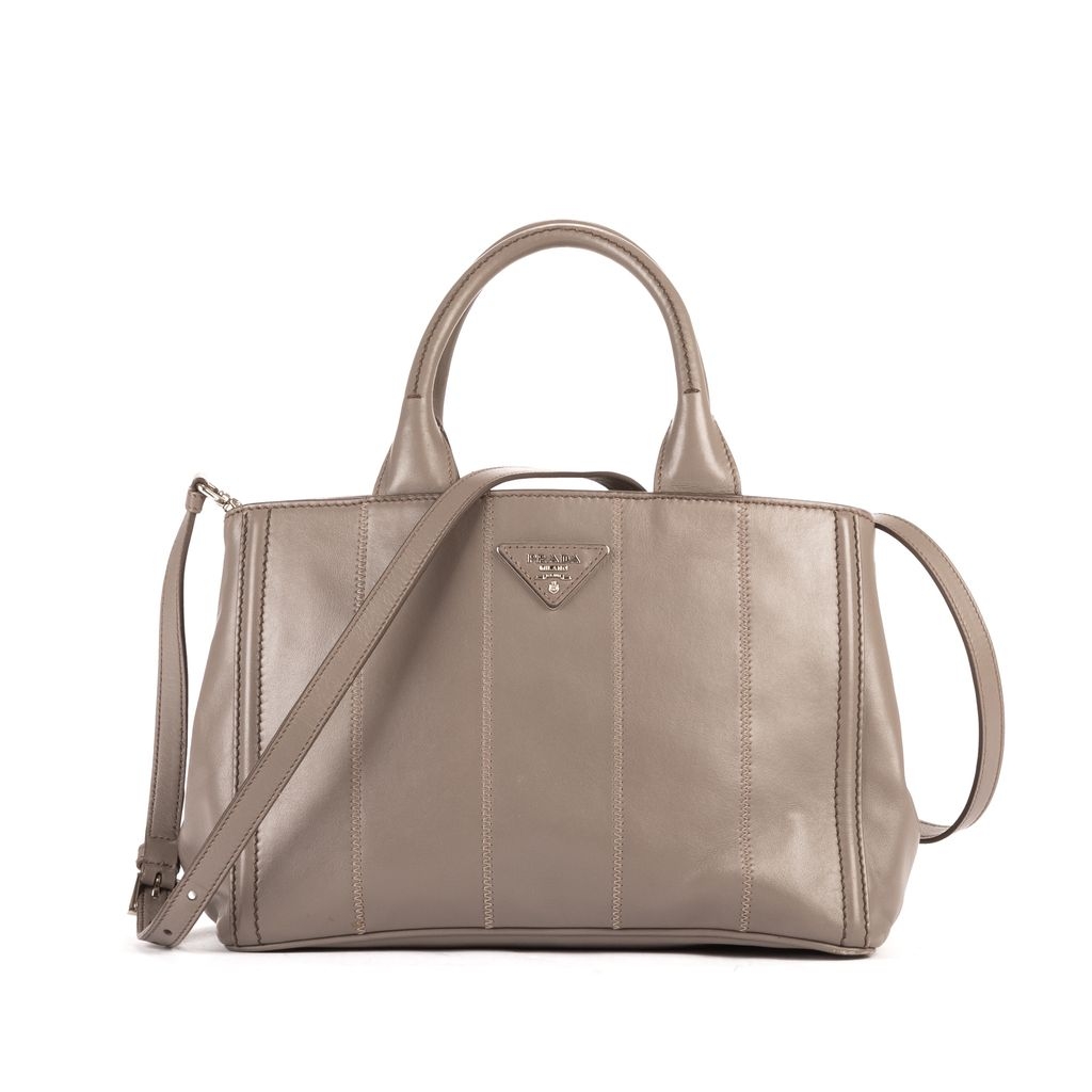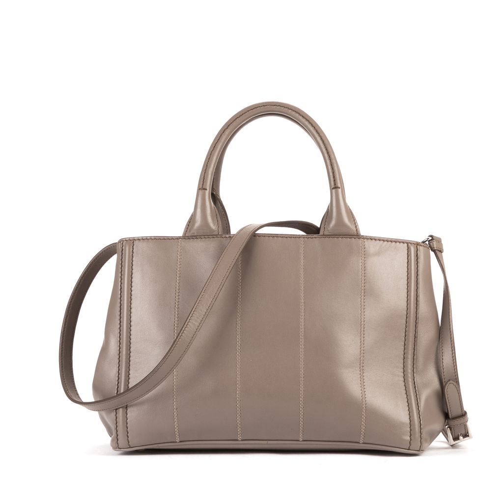 A vintage Prada taupe calf leather Canapa bag with a certificate of authenticity, Approximately 20cm height, 28cm width.