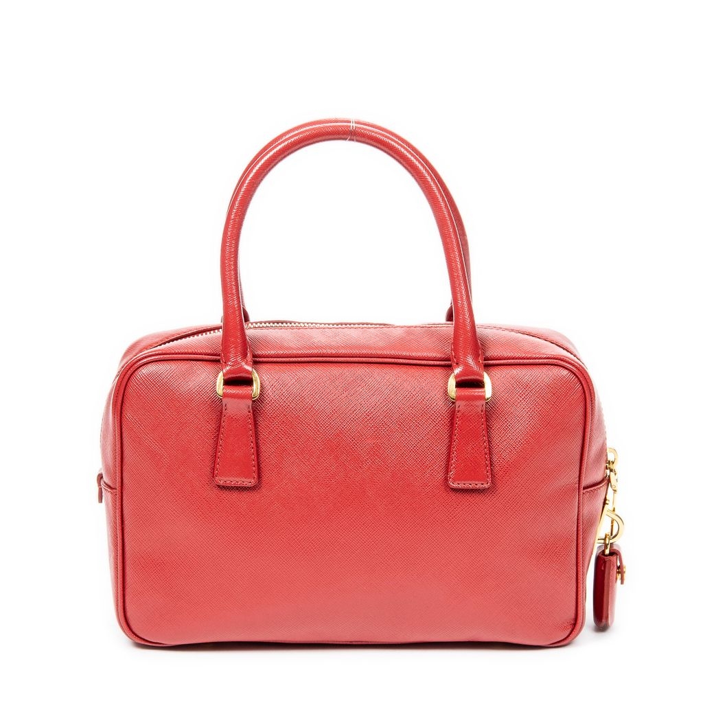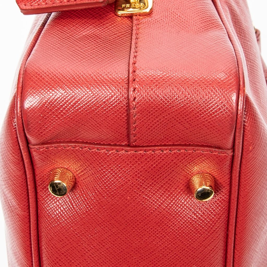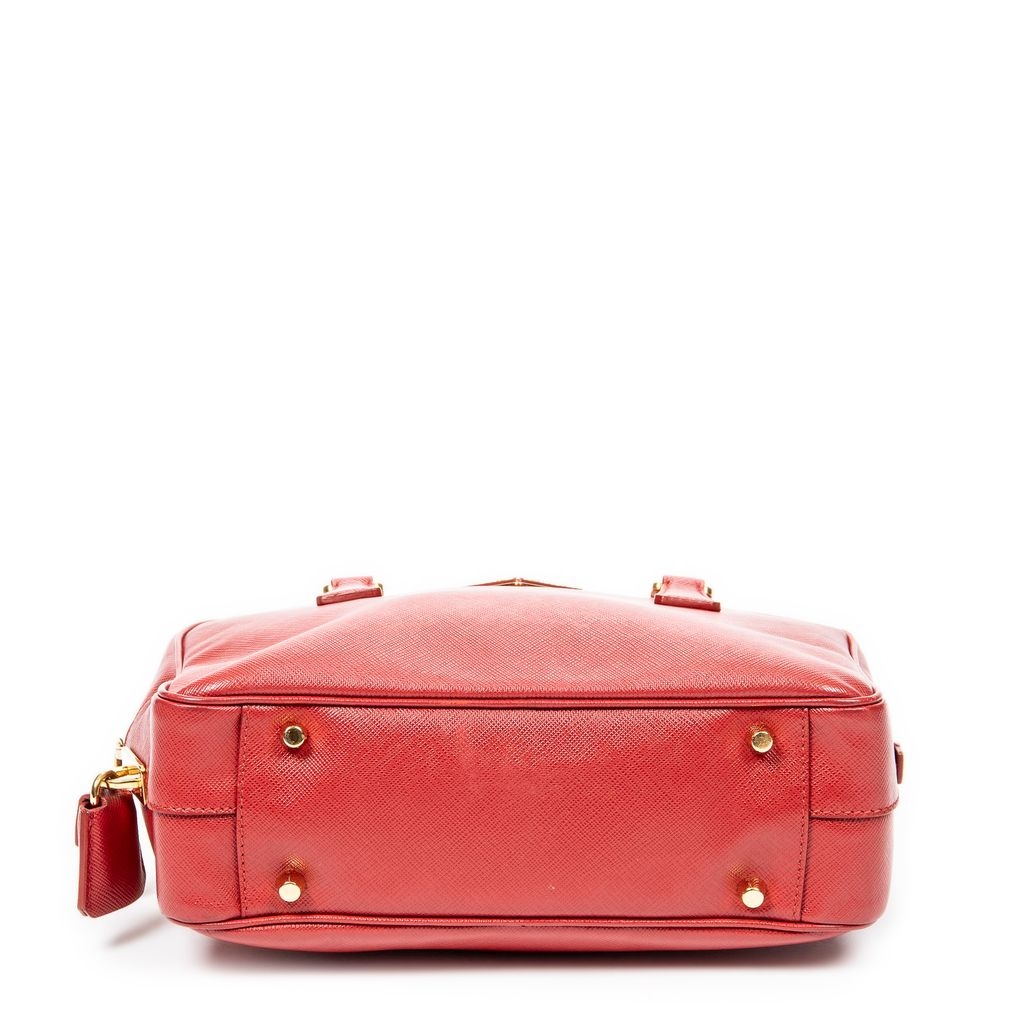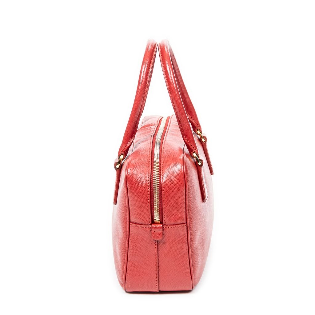 A vintage Prada red calf leather Small Top Handle bag with a certificate of authenticity, Approximately 16cm height, 25cm width.