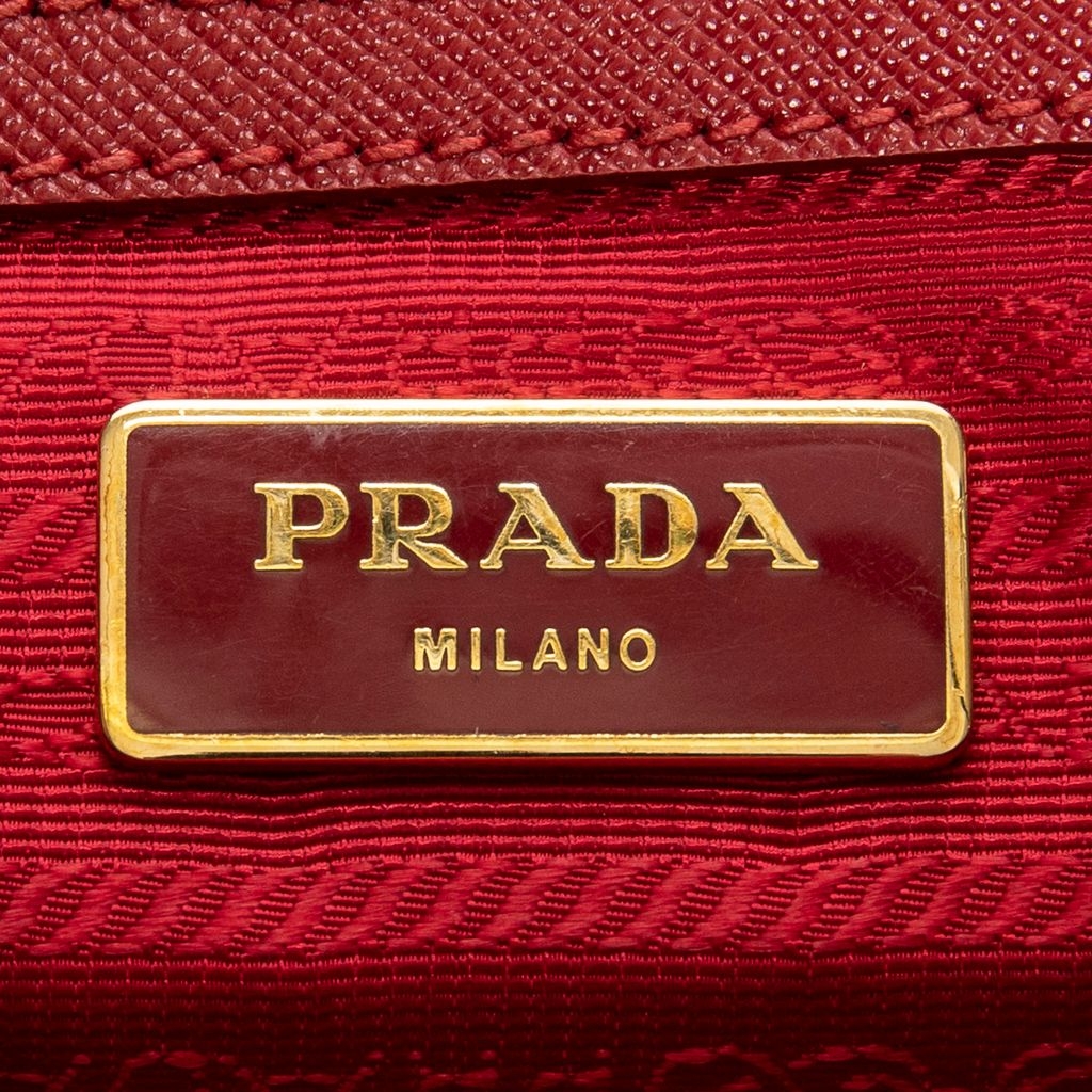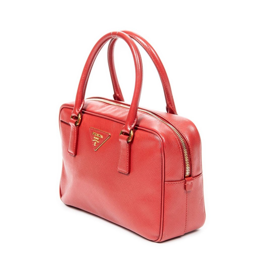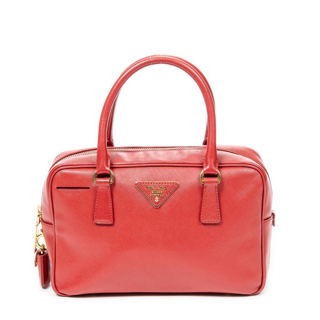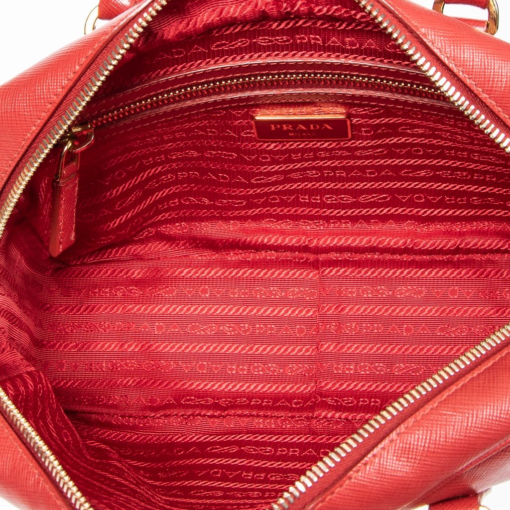 A vintage Prada red calf leather Small Top Handle bag with a certificate of authenticity, Approximately 16cm height, 25cm width.