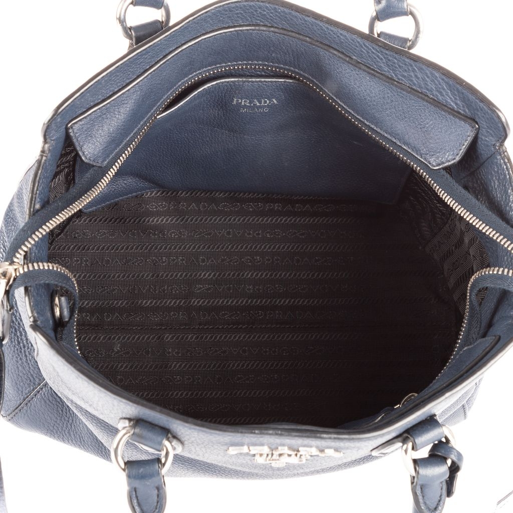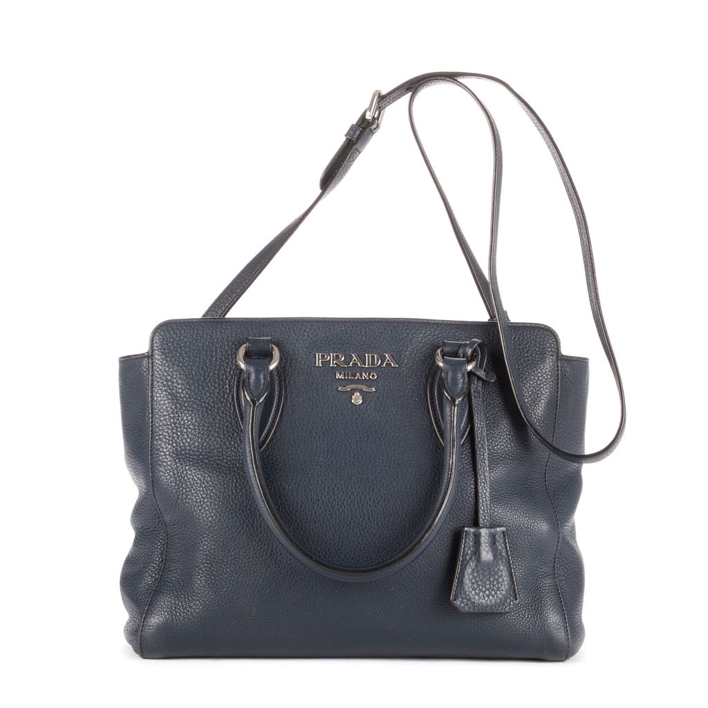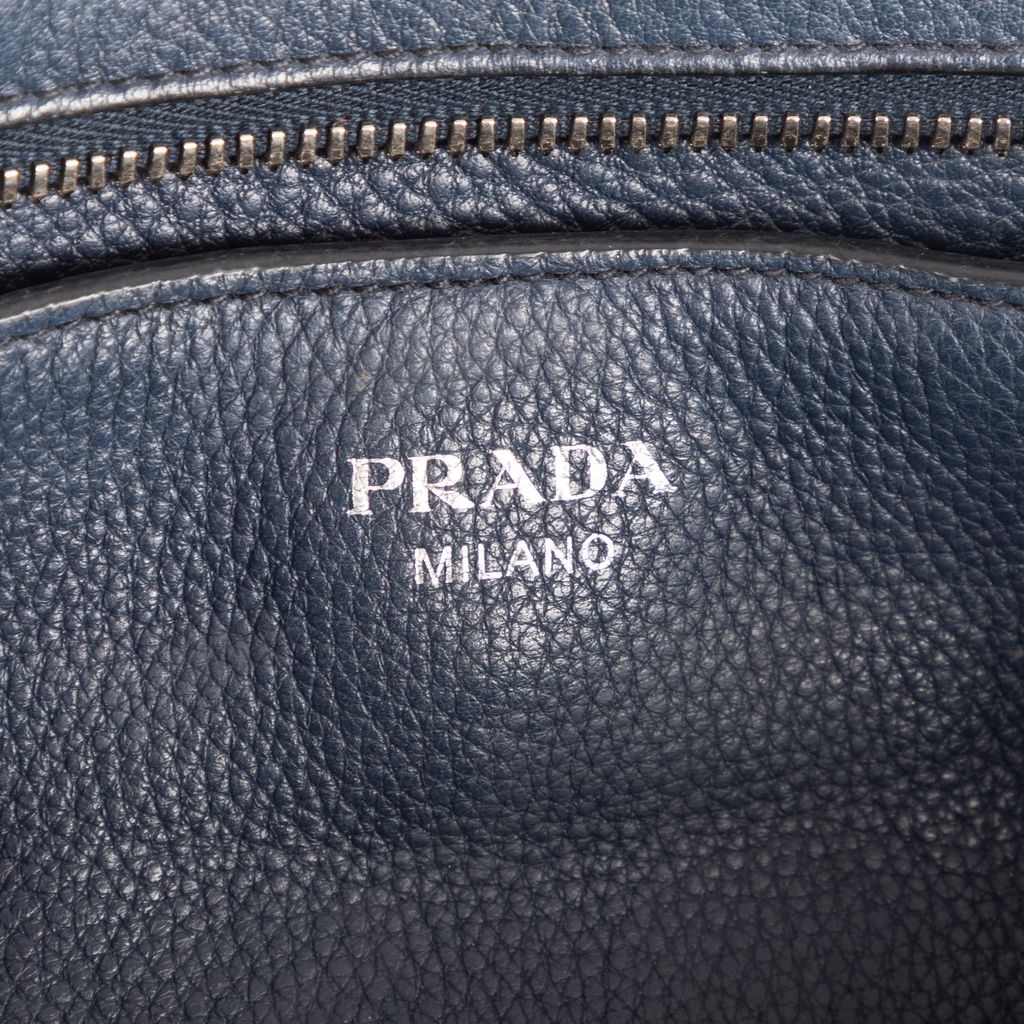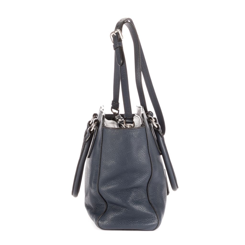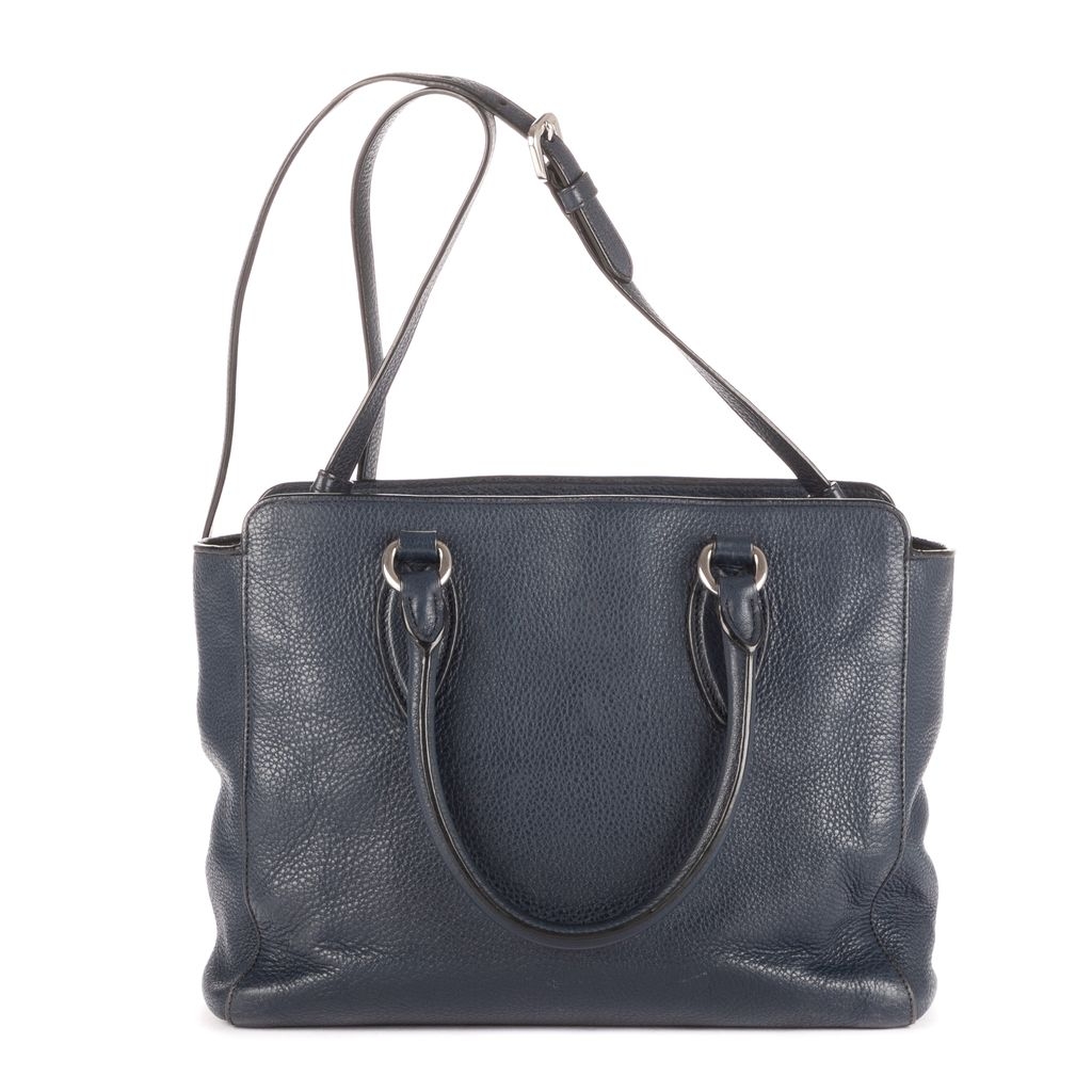 A vintage Prada navy calf leather Tote Logo Zip bag with a certificate of authenticity, Approximately 22cm height, 28cm width.