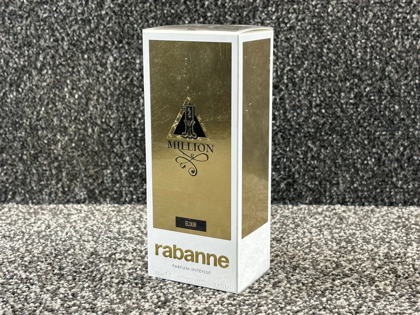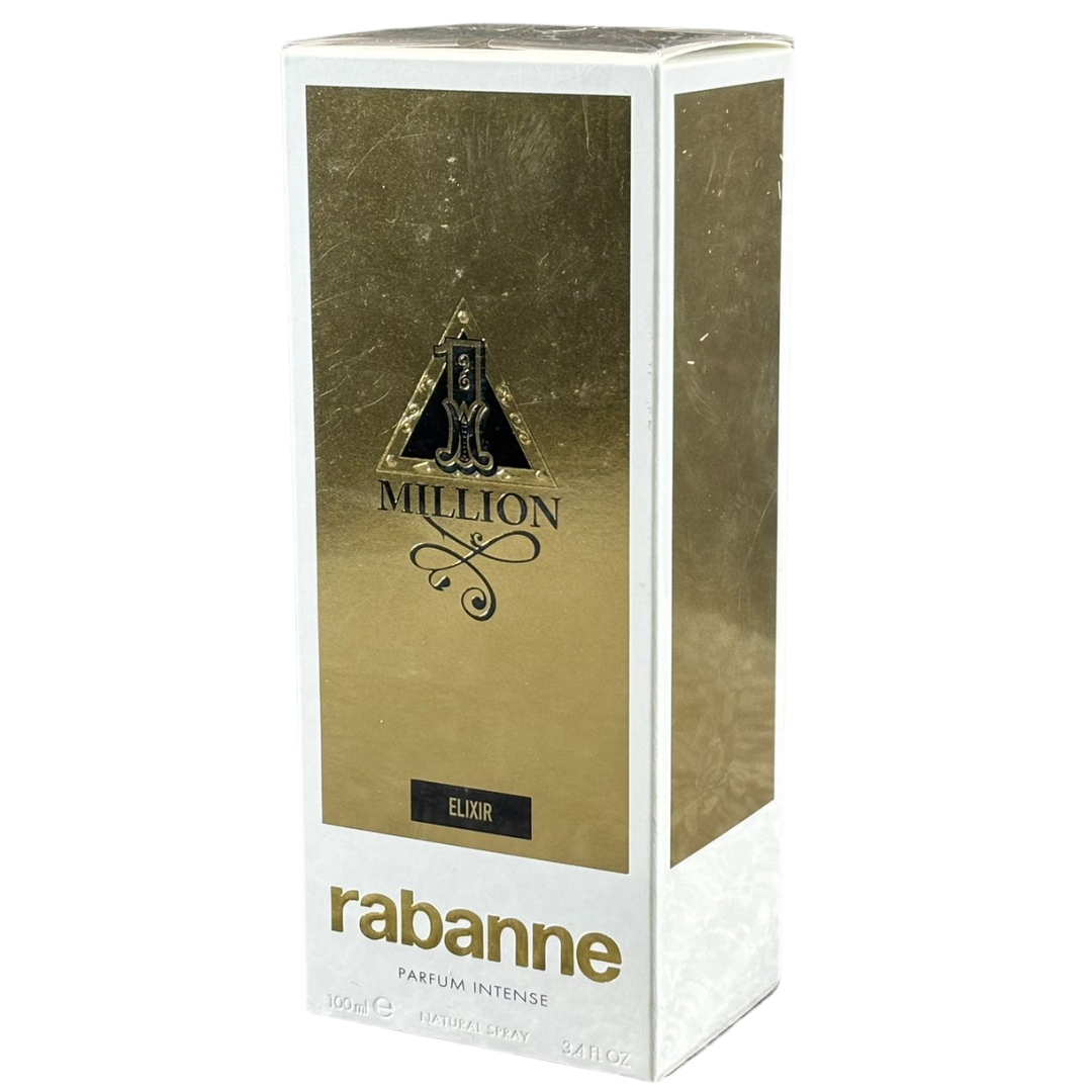 A 100ml bottle of Rabanne 1 Million Elixir Parfum Intense Natural Spray, presented in its original presentation box and offering one of the most powerful and concentrated interpretations within the iconic 1 Million fragrance line. Designed to elevate intensity and richness, this elixir edition reflects Rabanne’s bold, modern approach to masculine perfumery.