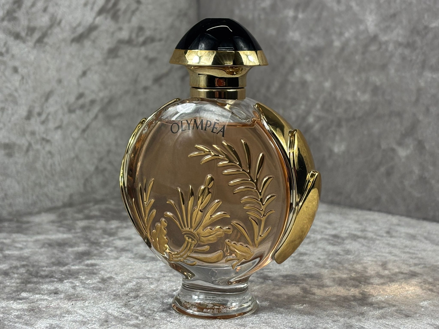 Presented in the iconic Olympea bottle with a golden, sun-inspired