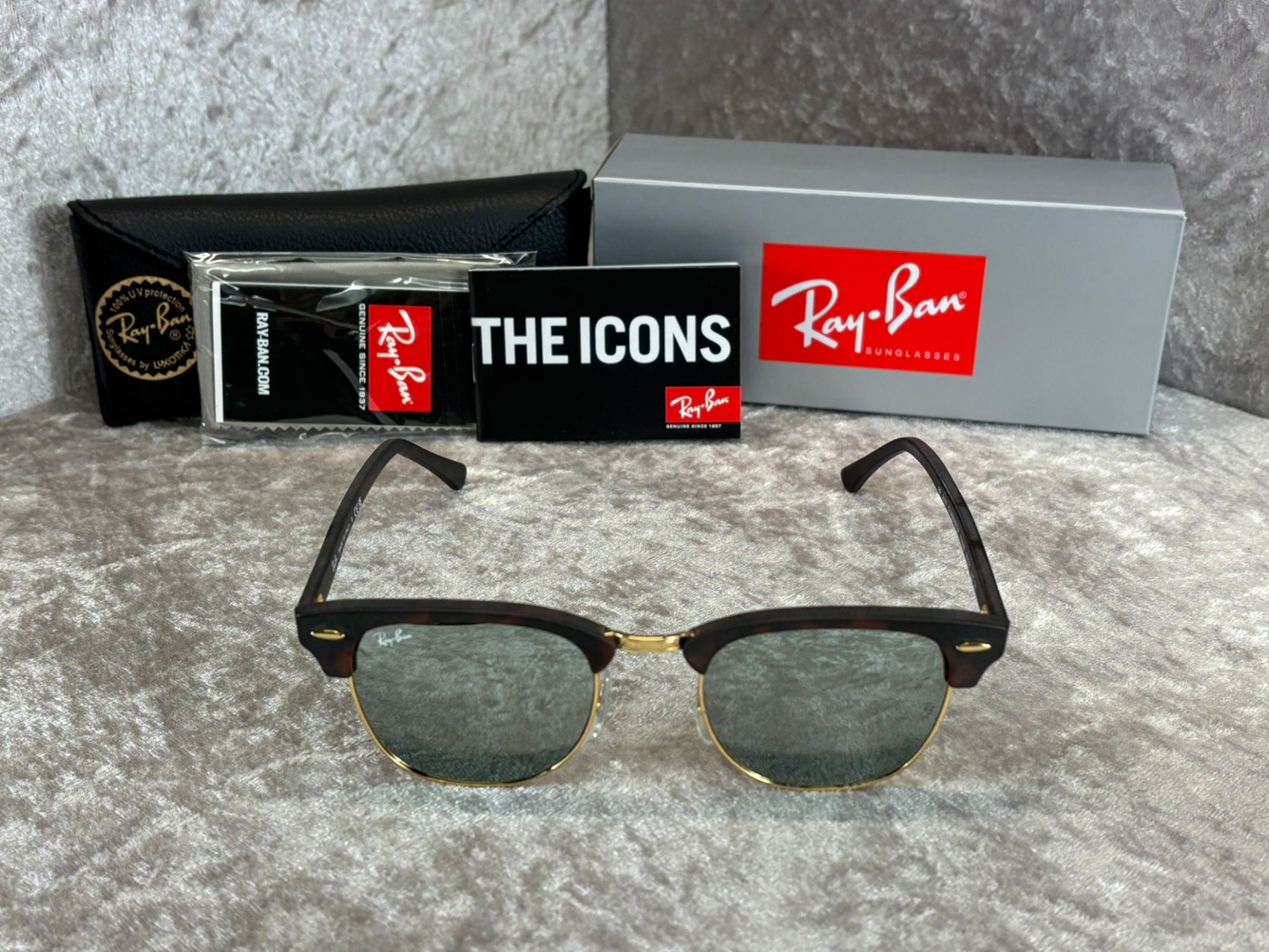 A brand new, unused and boxed pair of Ray-Ban RB3016 1145/30 Havana/Grey sunglasses, offering a refined take on the iconic Clubmaster silhouette. The rich Havana frame pairs perfectly with the crisp grey mirrored lenses, giving this classic model a fresh, modern edge while preserving the timeless character Ray-Ban is known for. With the Ray-Ban signature featured on the lens, this pair delivers unmistakable authenticity and style.