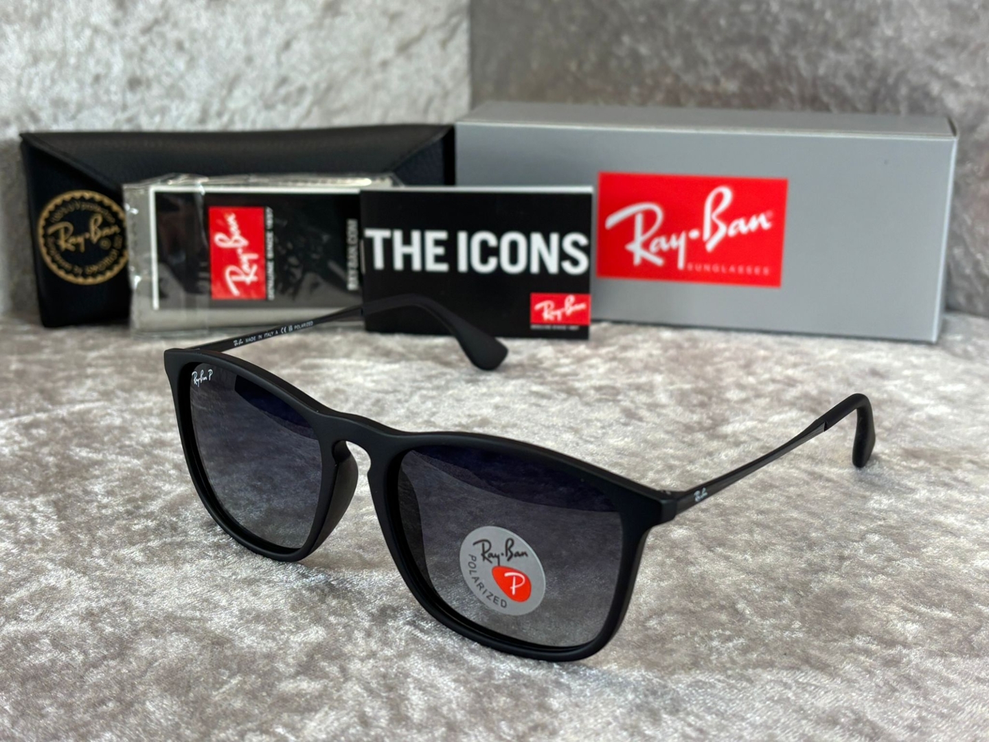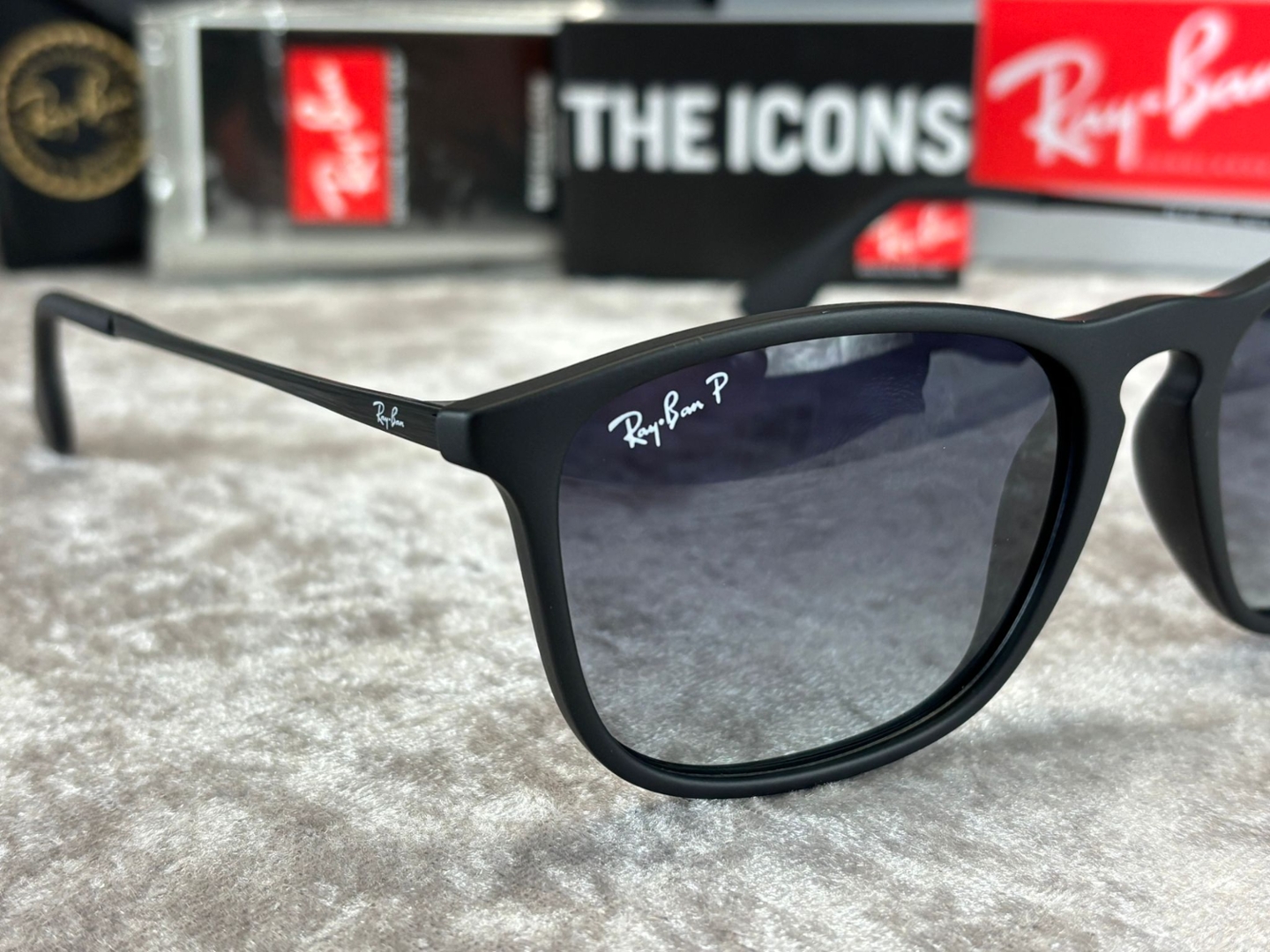 A brand new, unused and boxed pair of Ray-Ban RB4187 622/T3 Black sunglasses, offering a sleek and modern look with the unmistakable appeal of Ray-Ban styling. The matte black frame gives a clean, contemporary finish, while the grey gradient polarised lenses deliver sharper vision, reduced glare and superb comfort in changing light. With the Ray-Ban logo featured on the lens, these sunglasses carry the instantly recognisable signature of the brand.