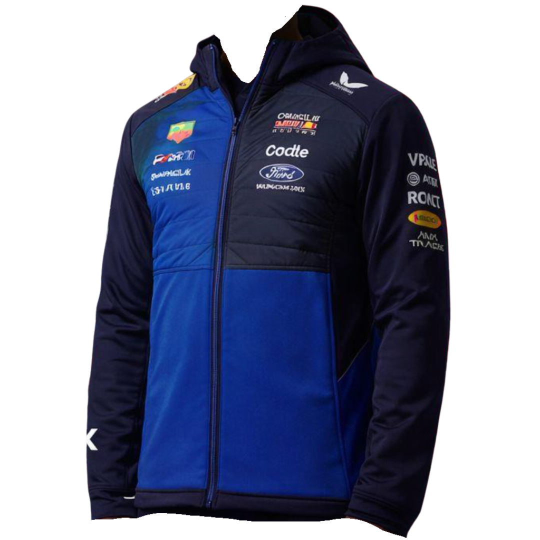 A brand new Red Bull Racing Hybrid Jacket is an official piece of teamwear, inspired by the outerwear worn by Oracle Red Bull Racing throughout the Formula One season. Presented in the iconic blue and navy colourway, it features bold team and sponsor branding across the chest and sleeves, delivering a dynamic motorsport aesthetic with unmistakable paddock authenticity.
