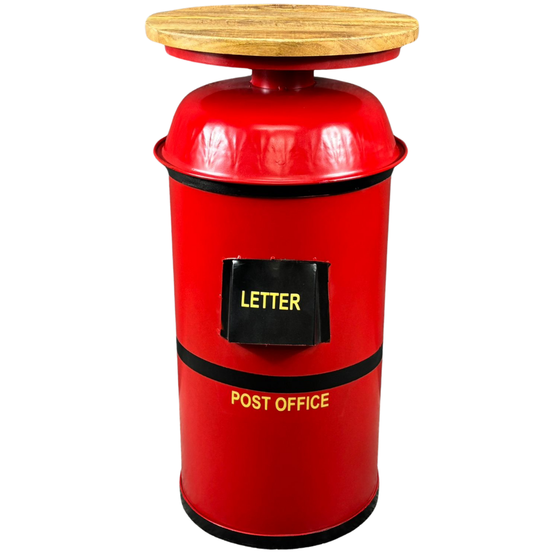 A red post box style side table is a striking decorative piece inspired by classic British street furniture, combining bold colour with playful character. Finished in a vibrant red with authentic detailing, it features a cylindrical post box design complete with letter slot styling, making it an eye-catching accent for living spaces, hallways, or themed interiors.