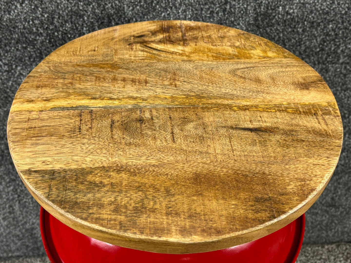 Red Post Box Style Side Table with a Wooden Top