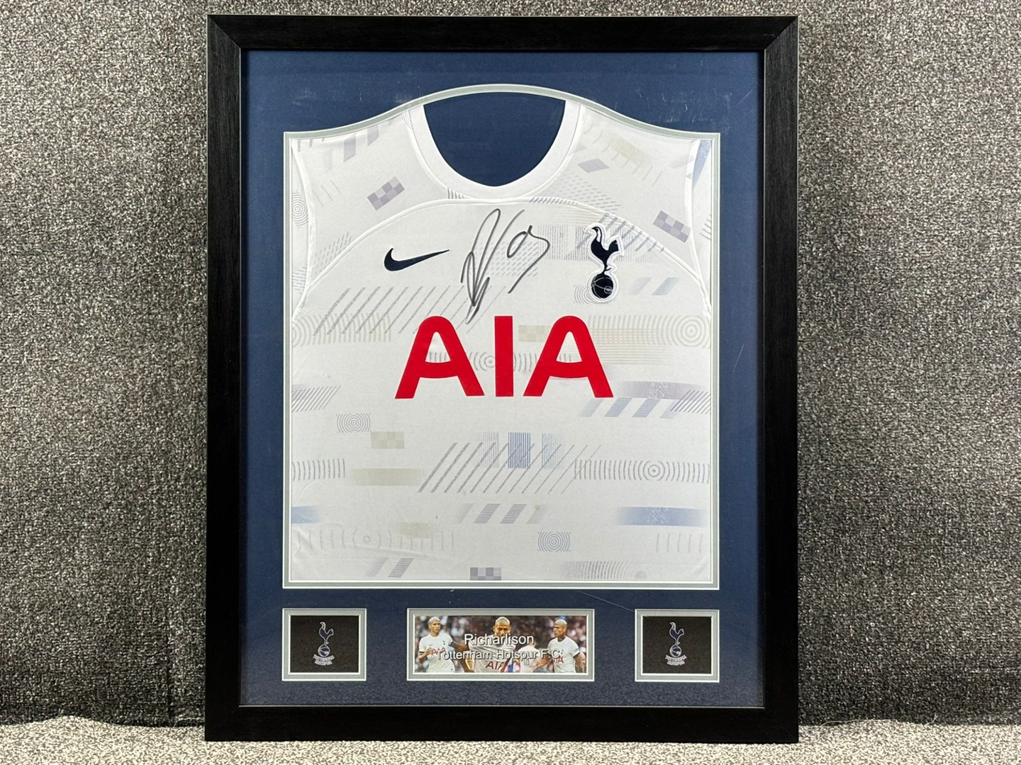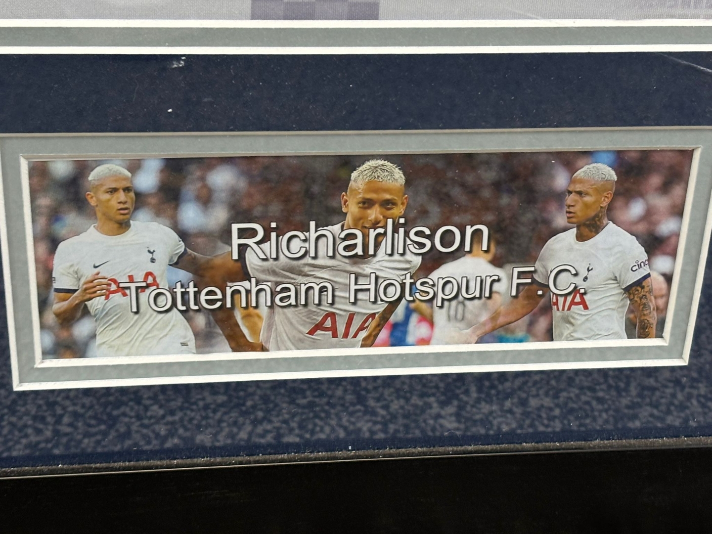 A signed and authenticated Richarlison Tottenham Hotspur Football Shirt in a presentation frame. Approx 83cm height, 68cm width.