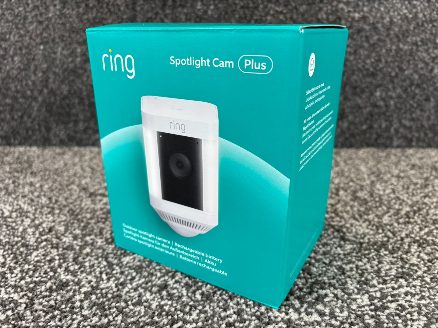 A brand new Ring Spotlight Cam Plus with HD Video, Two-Way Talk and Motion Controls.