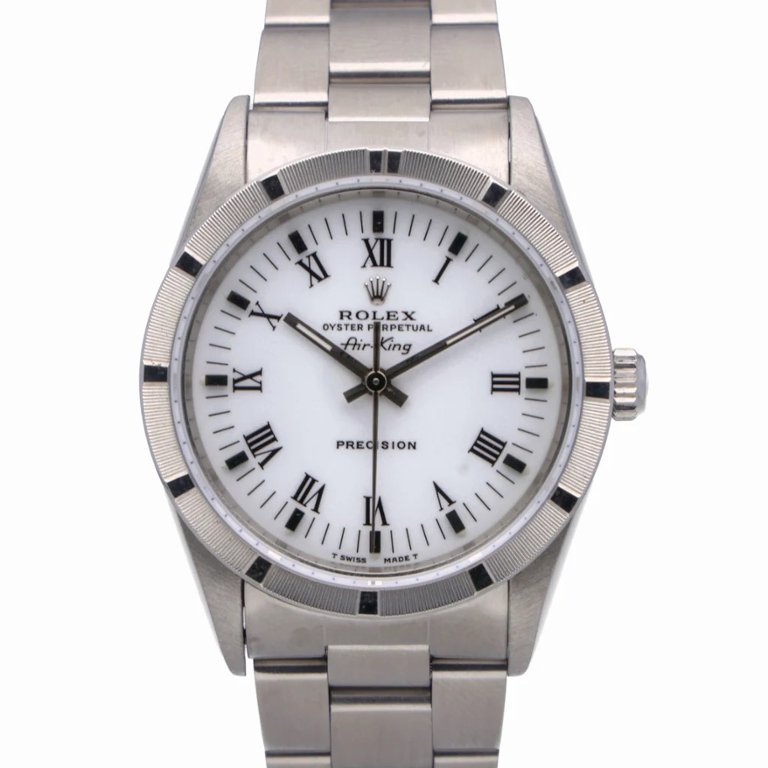 A Rolex Air-King Watch, Stainless Steel with a White Dial.