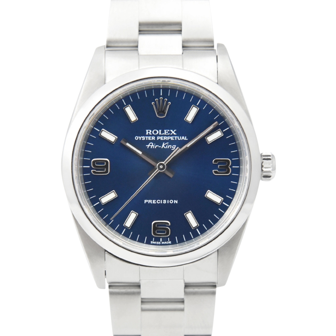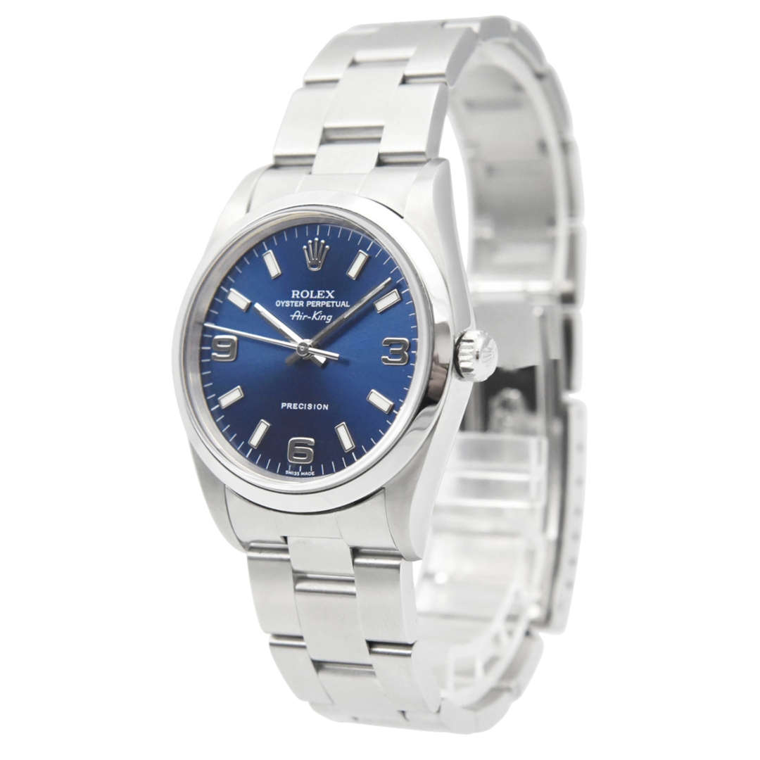 A Rolex Air-King Watch, Stainless Steel with a Blue Dial.