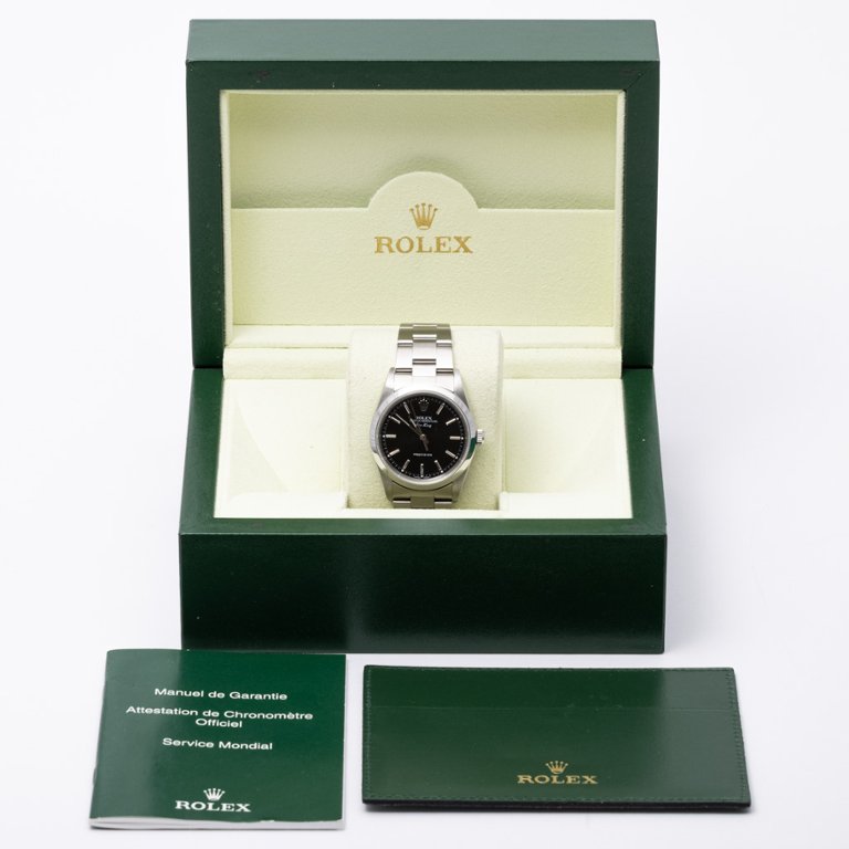 A Rolex Air-King Watch, Stainless Steel with a Black Dial.