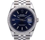 A Rolex Date Watch, Stainless Steel on a Blue Dial