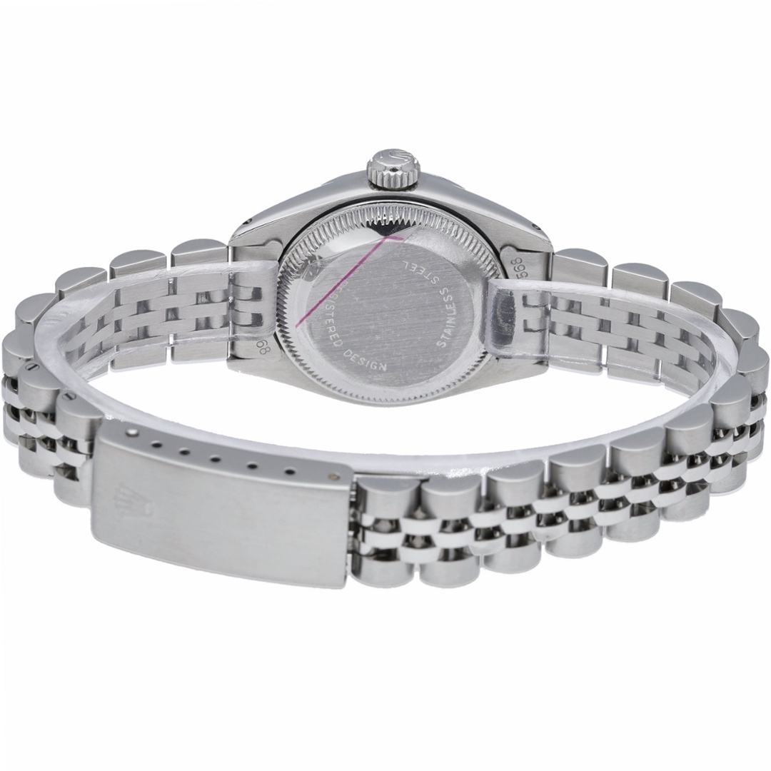A Rolex Date 69160 in stainless steel, presented with a classic black dial that embodies understated vintage appeal. The 26mm case offers a refined and elegant wrist presence, perfectly suited for those seeking a smaller, traditional Rolex with everyday versatility. The smooth bezel enhances the clean, minimalist design, allowing the dial and its subtle detailing to take centre stage while maintaining the timeless aesthetic that defines the Date line.