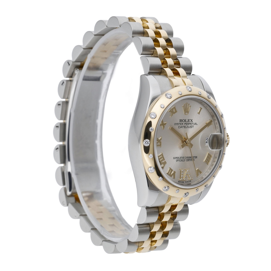 A Bi-Metal Rolex Datejust 31 Watch, Stainless Steel & 18ct Yellow Gold with a Scattered Diamond Bezel on a Silver Dial with an Original Rolex Diamond Roman Numeral VI Dial