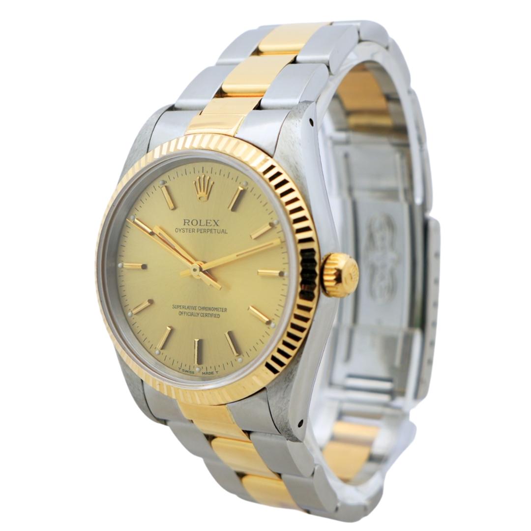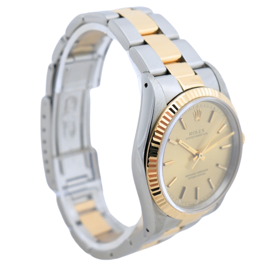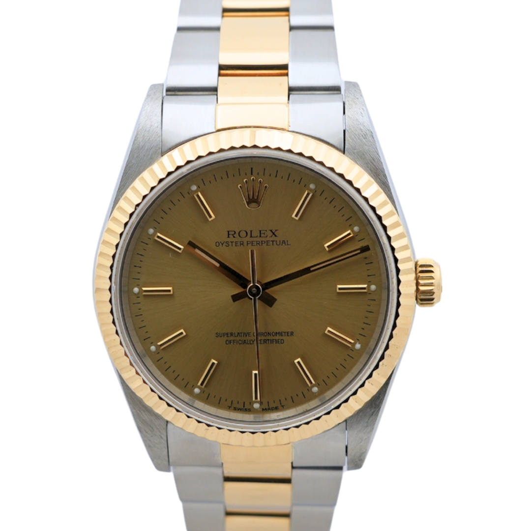 A Bi-Metal Rolex Datejust Watch, Stainless Steel and 18ct Yellow Gold with a Yellow Gold Fluted Bezel and a Champagne Dial with Baton Numerals