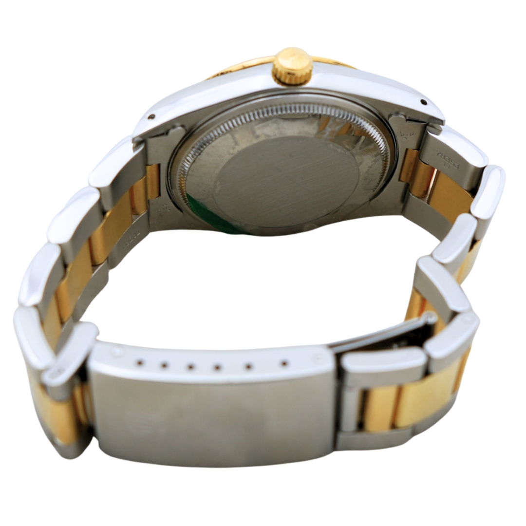 Driven by an automatic movement, this Datejust delivers exceptional accuracy and reliability — a hallmark of Rolex craftsmanship. The smooth performance and robust construction make it a versatile timepiece, ideal for both daily wear and formal occasions, while the bi-metal Oyster bracelet ensures comfort and a confident wrist presence.