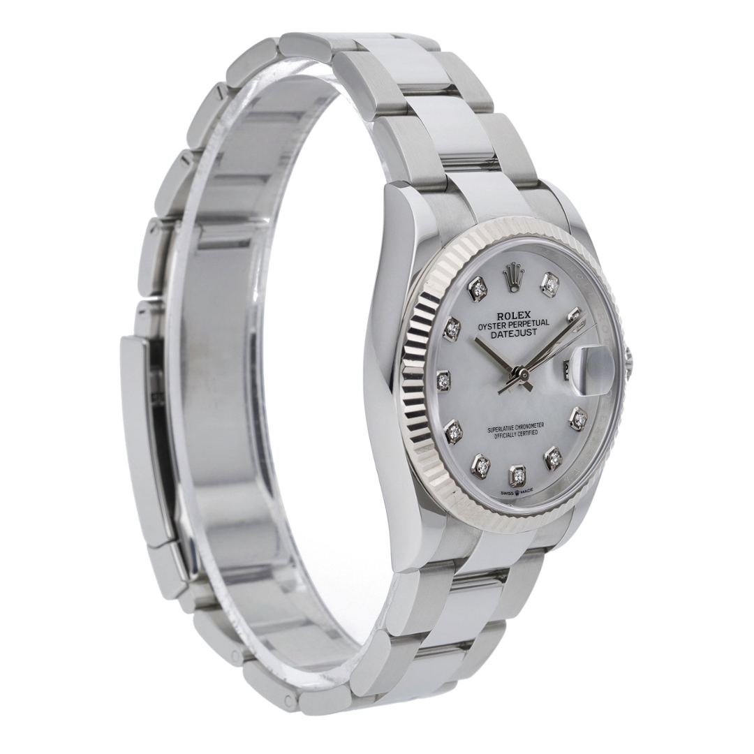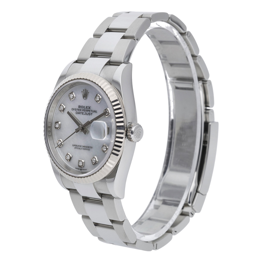 A Rolex Datejust 36 Watch, Stainless Steel with a Fluted 18ct White Gold Bezel on an MOP Dial with Original Rolex Diamond Numerals