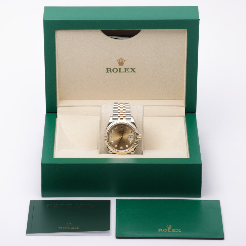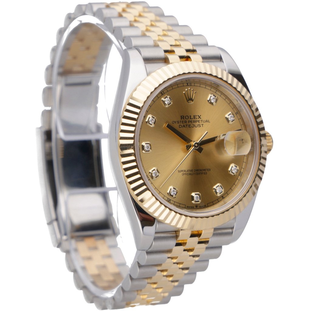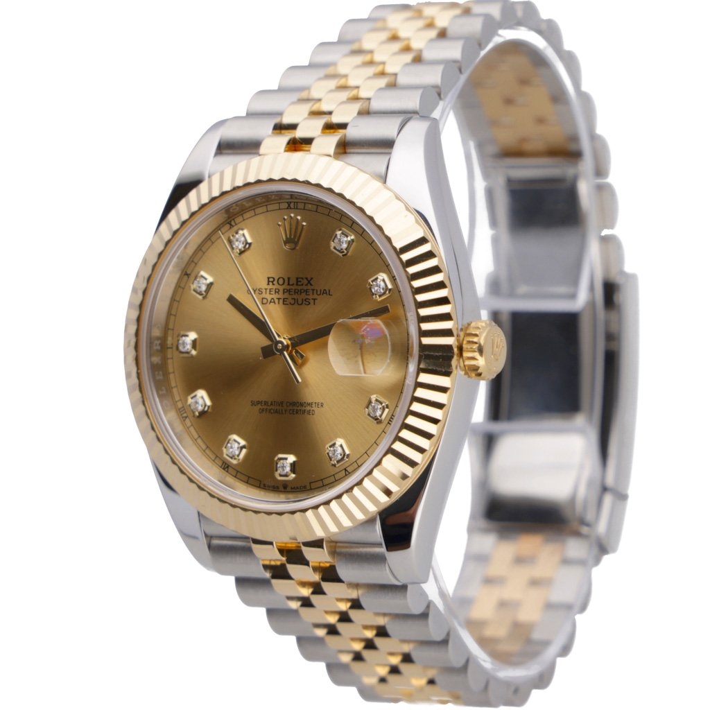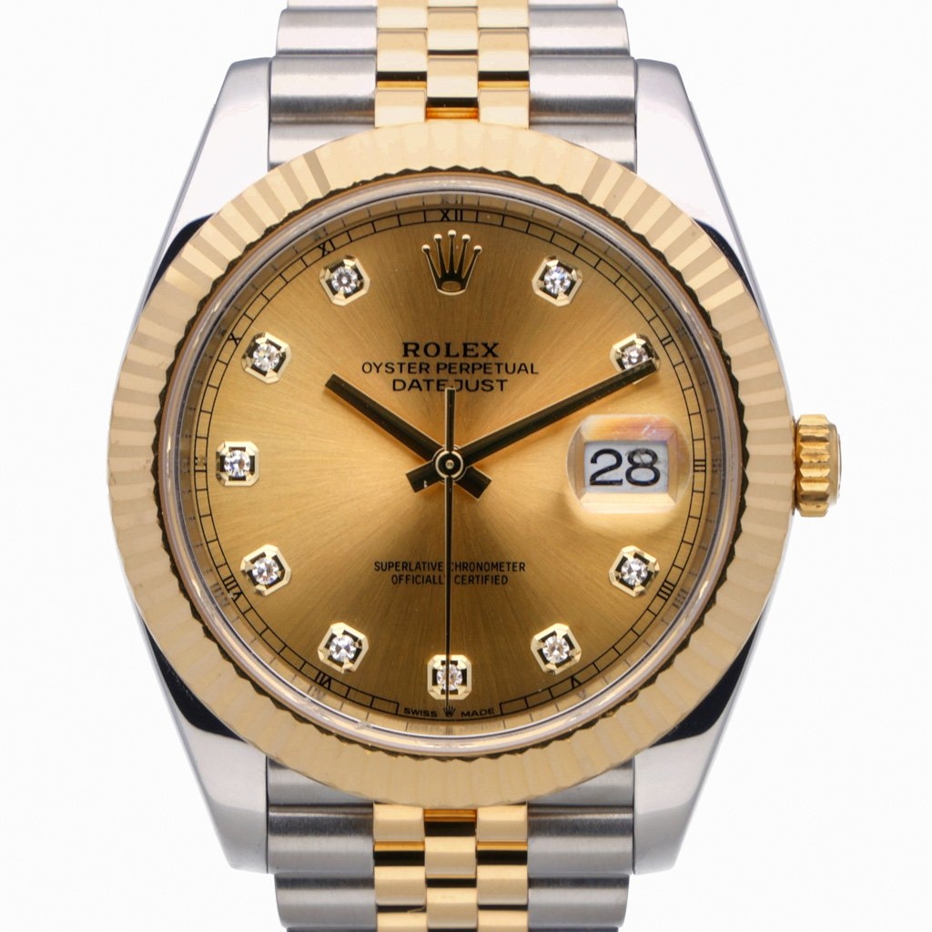 A Bi-Metal Rolex Datejust 41 Watch, Stainless Steel and 18ct Yellow Gold with a Yellow Gold Fluted Bezel on a Champagne Dial.