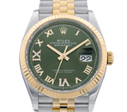 Dated 2025 and presented in immaculate condition, this example comes complete with its original Rolex box, full set of paperwork, and certification. Covered by the Rolex manufacturer's warranty until 2030, it offers both peace of mind and prestige. The Datejust 36 in mint green stands as one of Rolex’s most distinctive modern designs — a perfect blend of heritage, innovation, and contemporary charm.