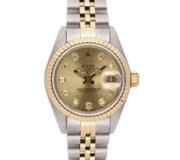 A Rolex Datejust Watch, Stainless Steel with an 18ct White Gold Diamond Bezel and a Blue Dial.