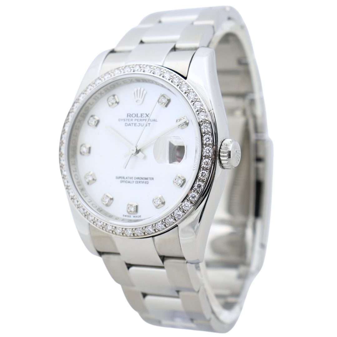 A Rolex Datejust Watch, Stainless Steel with an Afterset Diamond Bezel and an Afterset Mother of Pearl Diamond Dial