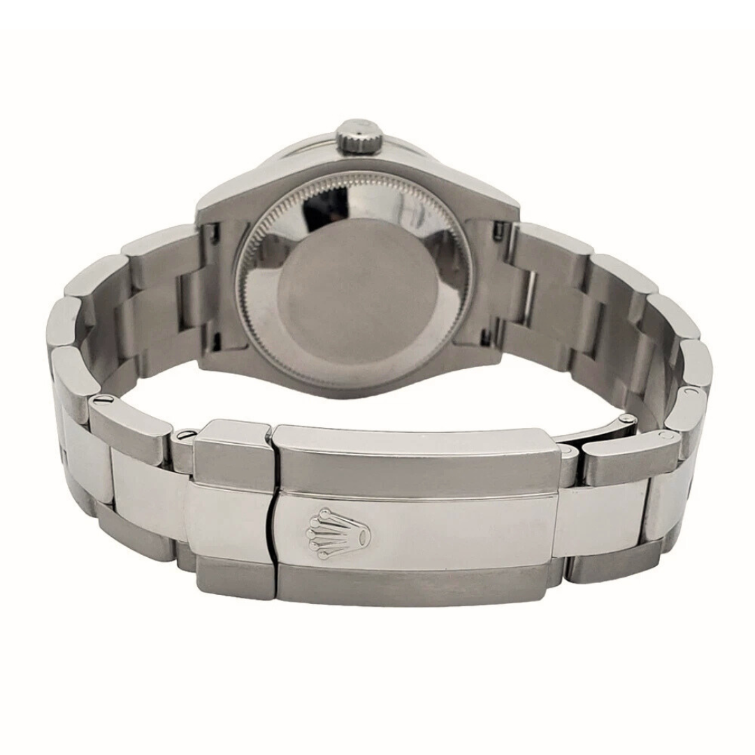The 31mm Oyster case is paired with the classic Oyster bracelet, offering everyday durability and comfort. Powered by Rolex’s automatic calibre 2235 movement, this model delivers chronometer-certified precision and dependable performance, complete with a date display at 3 o’clock beneath the Cyclops lens.