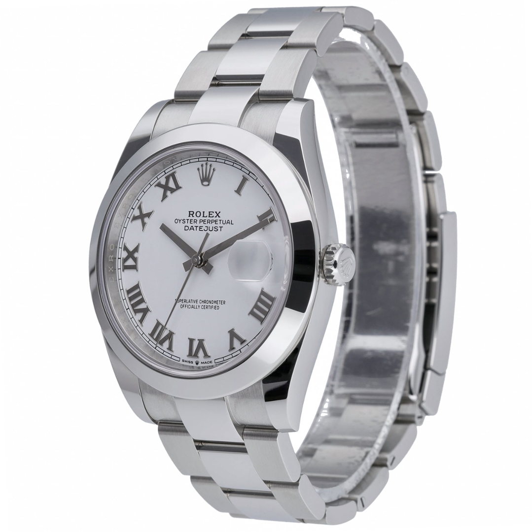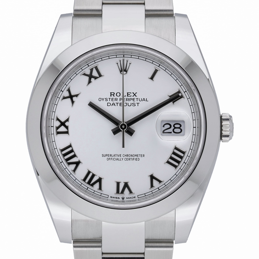 A Rolex Datejust Watch, Stainless Steel on a White Dial.