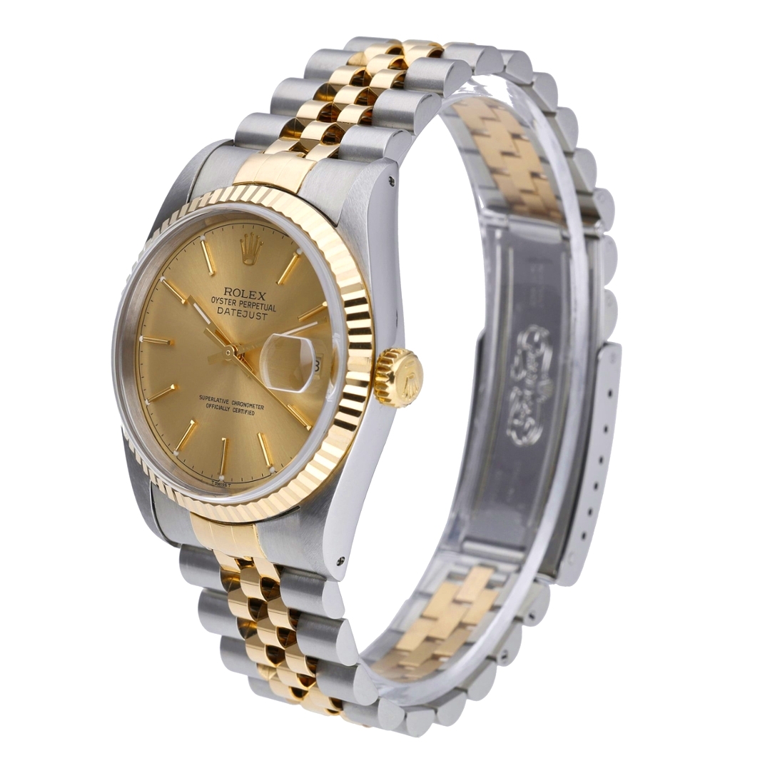 A Bi-Metal Rolex Datejust Watch, Stainless Steel & 18ct Yellow Gold on a Champagne Dial