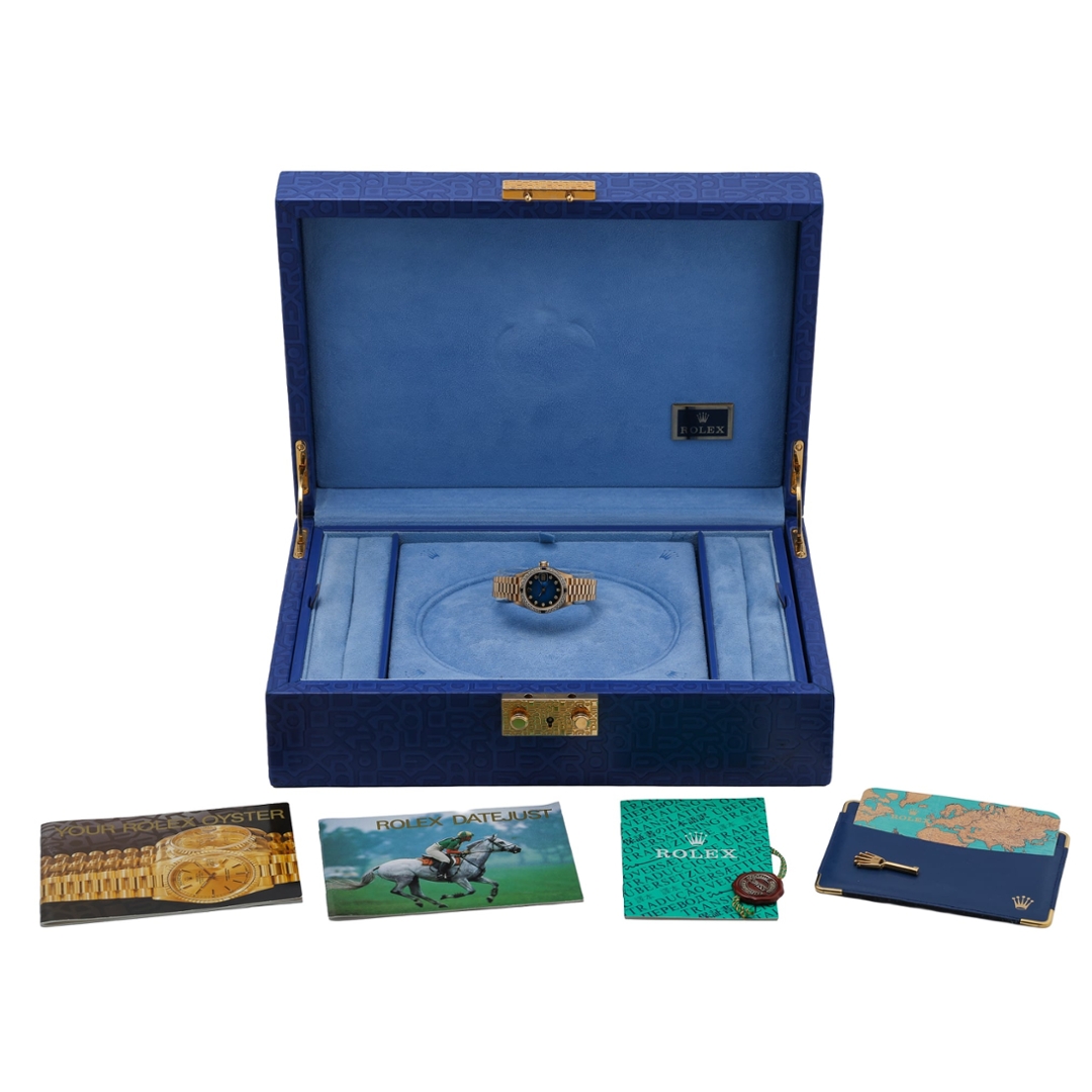 Rolex Datejust Watch, Full 18ct Yellow Gold with an afterset Diamond and Sapphire Bezel on a Blue Dial with Original Rolex Diamond Numerals