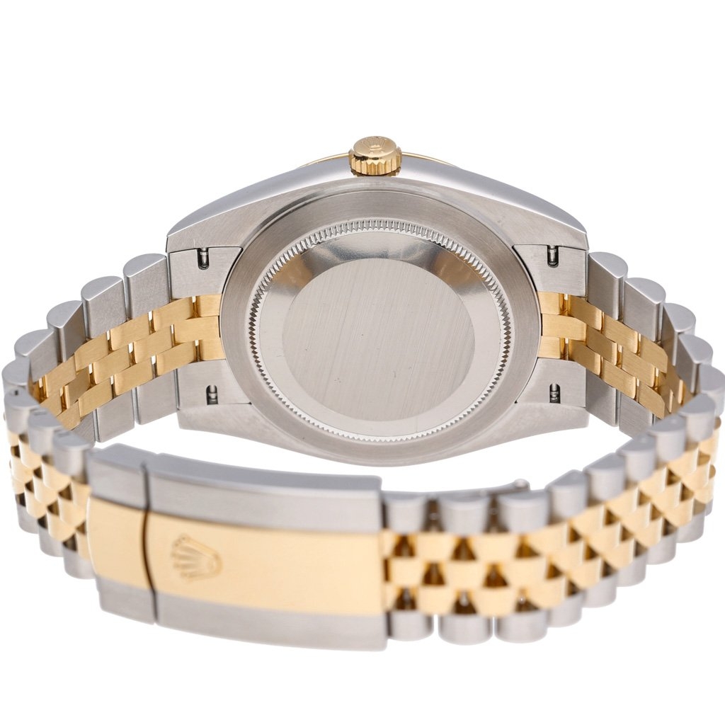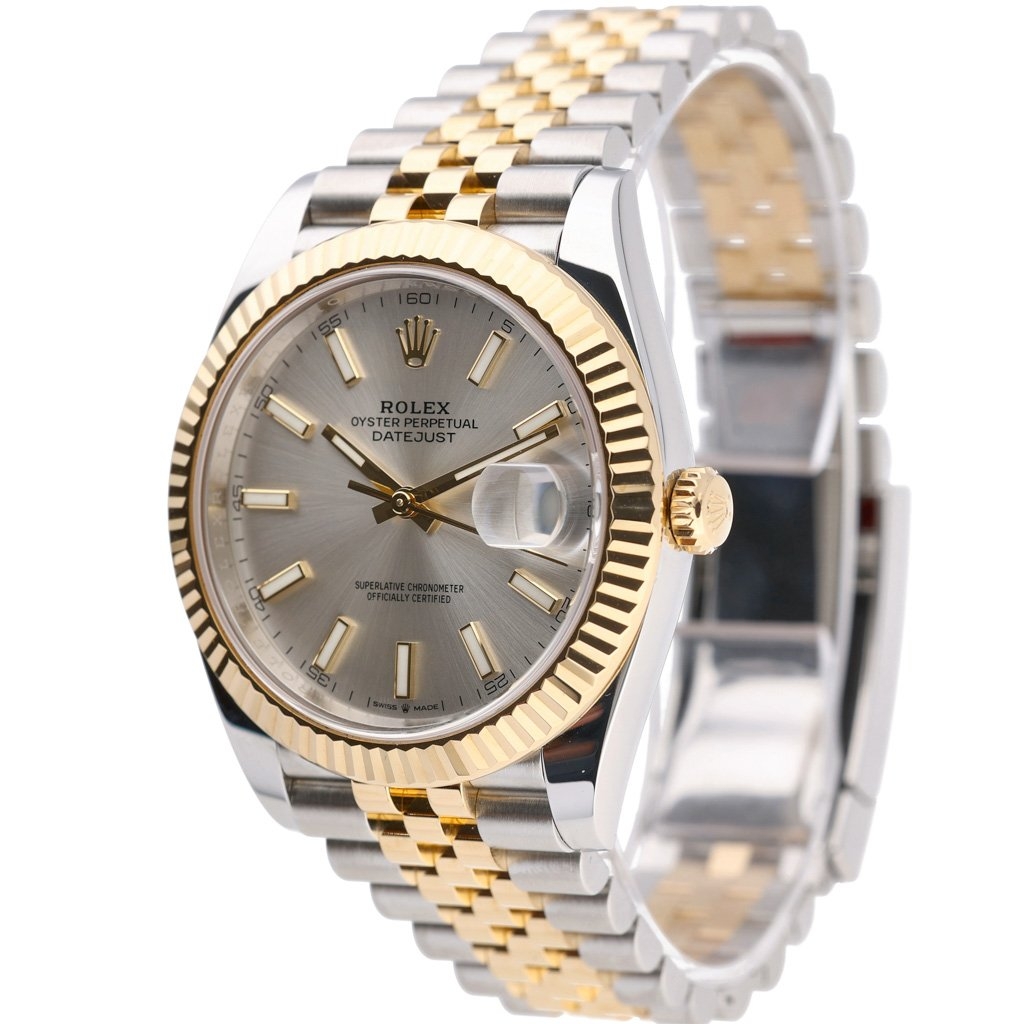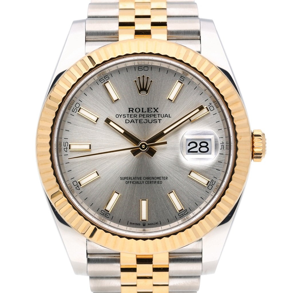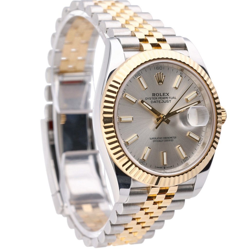 A Bi-Metal Rolex Datejust 41 Watch, Stainless Steel and 18ct Yellow Gold with a Yellow Gold Fluted Bezel on a Silver Dial