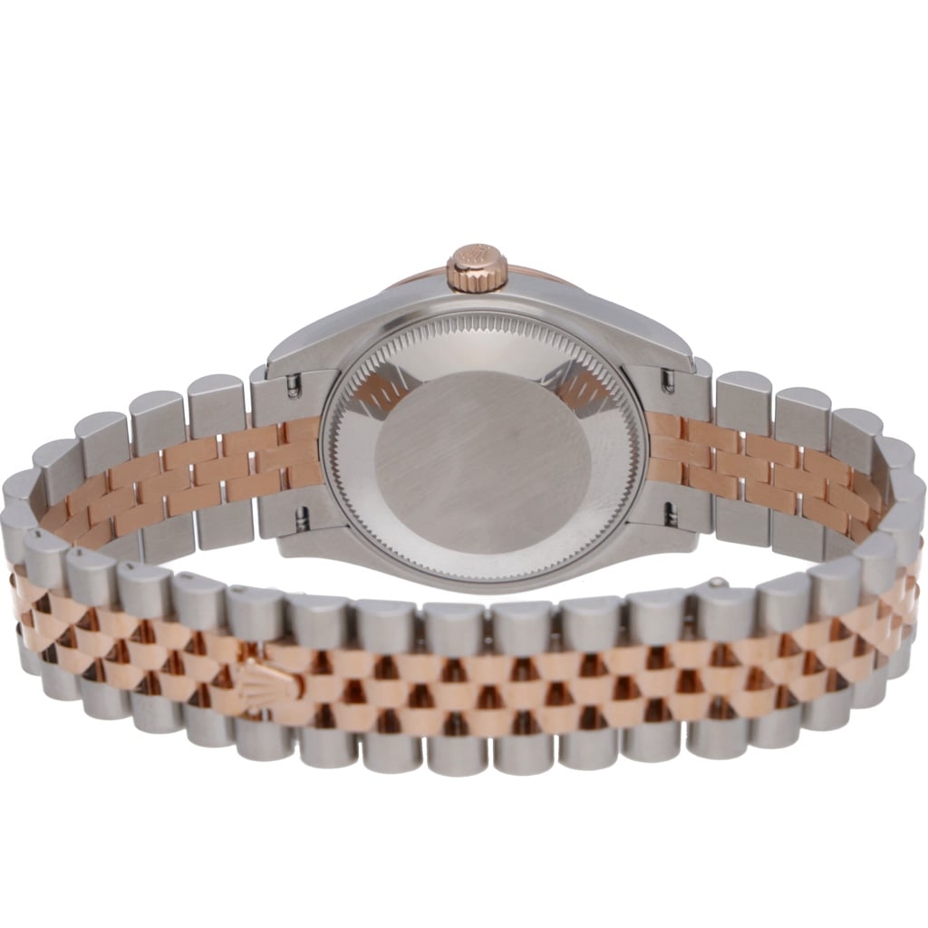 A Rolex Datejust 31 reference 278271 in Oystersteel and 18ct Everose gold, presented boxed and certified with its original full set of Rolex paperwork. The 31mm case is fitted with the signature Everose fluted bezel and mounted on the Jubilee bracelet, offering a refined balance between classic elegance and everyday versatility.