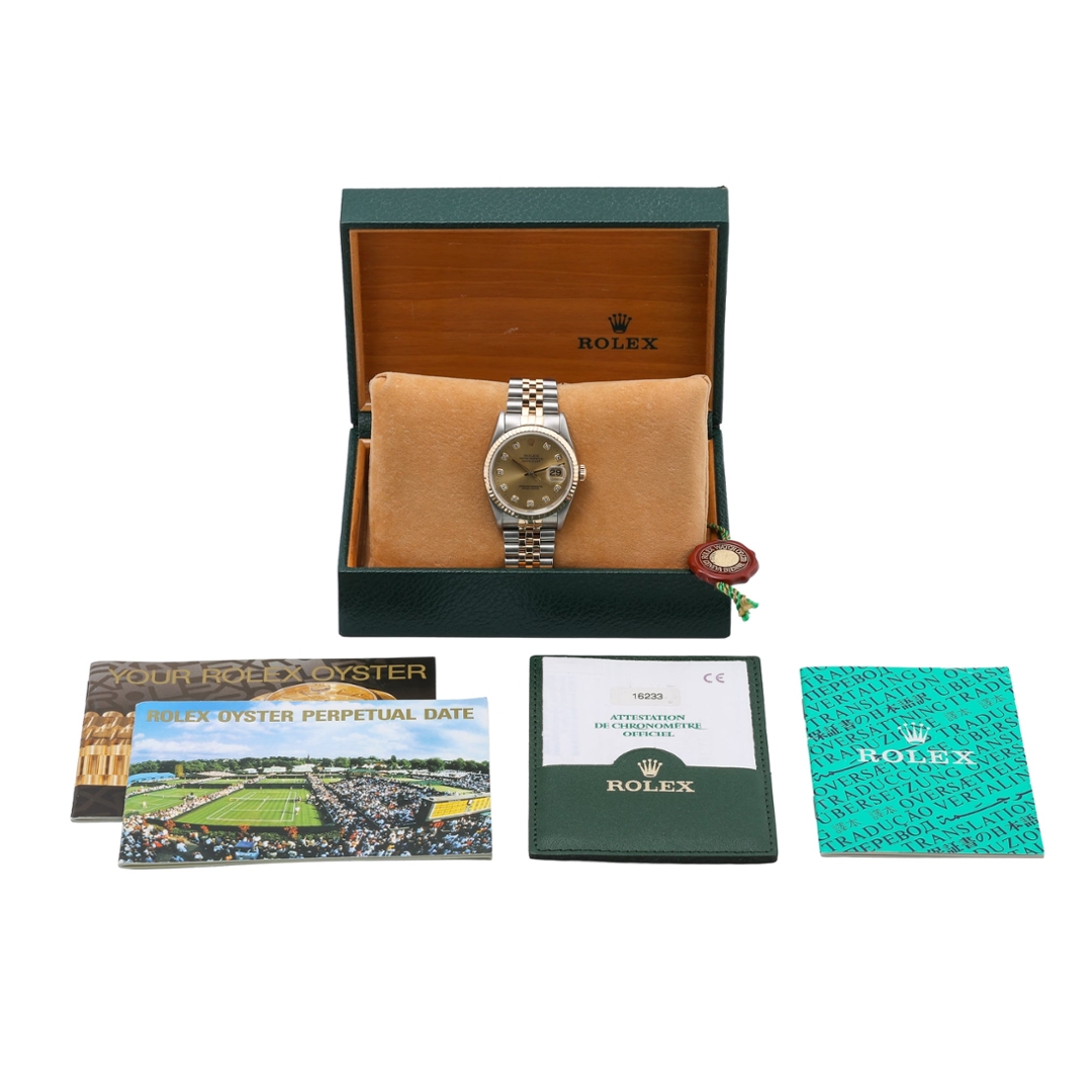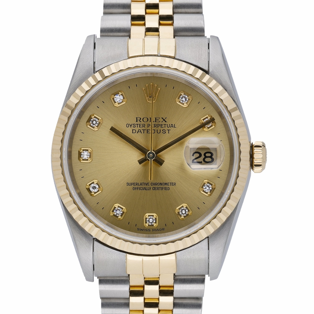 A Bi-Metal Rolex Datejust Watch, Stainless Steel & 18ct Yellow Gold on a Champagne Dial with Original Rolex Diamond Numerals