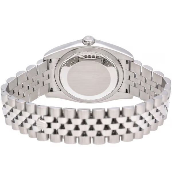 Powered by the Rolex calibre 3135 automatic movement, this model offers proven reliability and chronometer-certified precision. The 3135 is widely regarded as one of Rolex’s most durable and respected movements, featuring a Parachrom hairspring and robust architecture built for longevity. The date aperture at 3 o’clock, with the Cyclops lens, ensures excellent legibility, reinforcing the Datejust line's practical heritage.