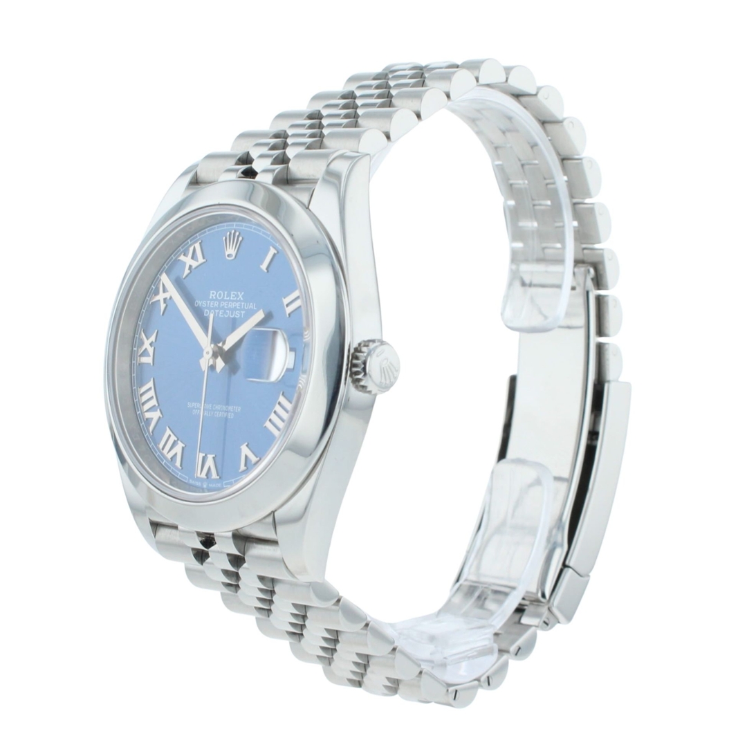 A Rolex Datejust 41 Watch, Stainless Steel on a Blue Dial.