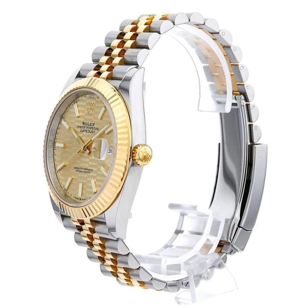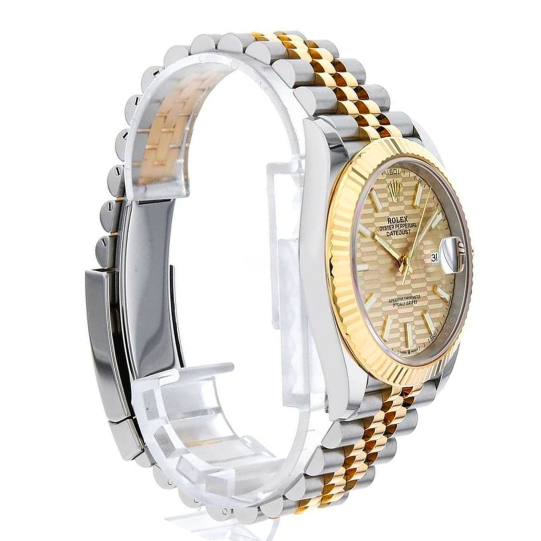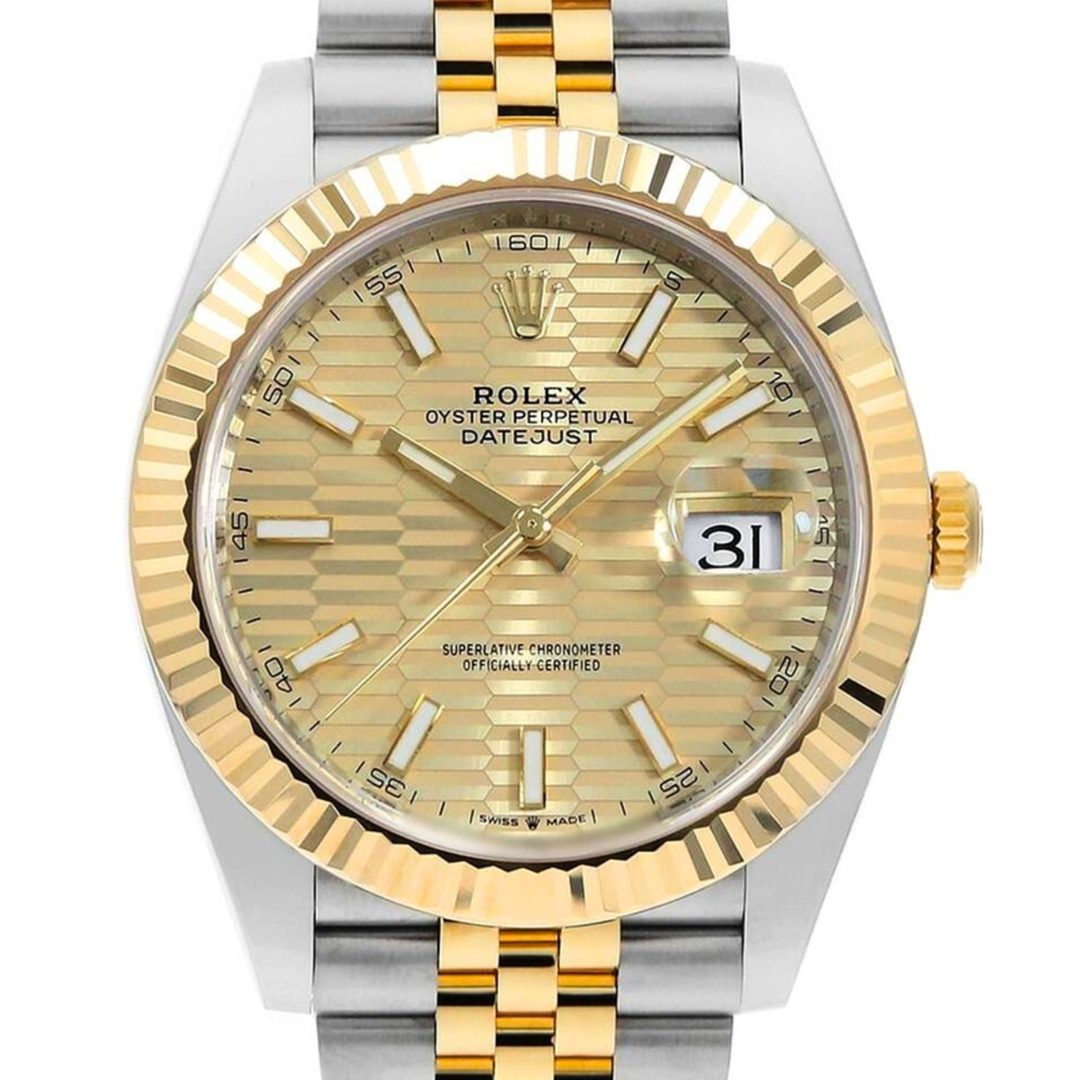 A Bi-Metal Rolex Datejust 41 Watch, Stainless Steel and 18ct Yellow Gold with a Yellow Gold Fluted Bezel on a Golden Motif Dial.
