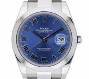 A Rolex Watch, Stainless Steel with an 18ct White Gold Fluted Bezel and a Blue Dial with Original Diamond Numerals.