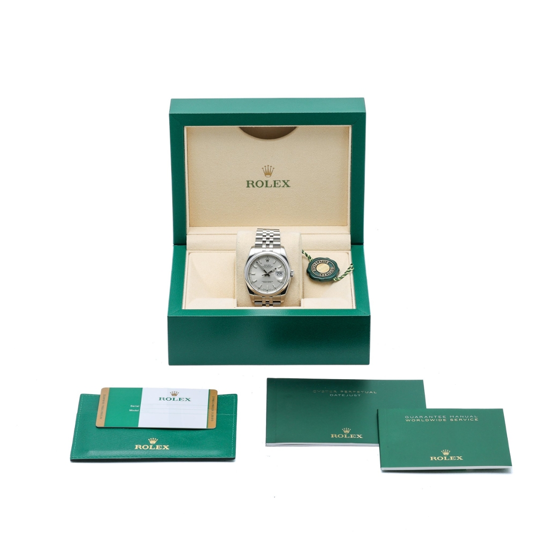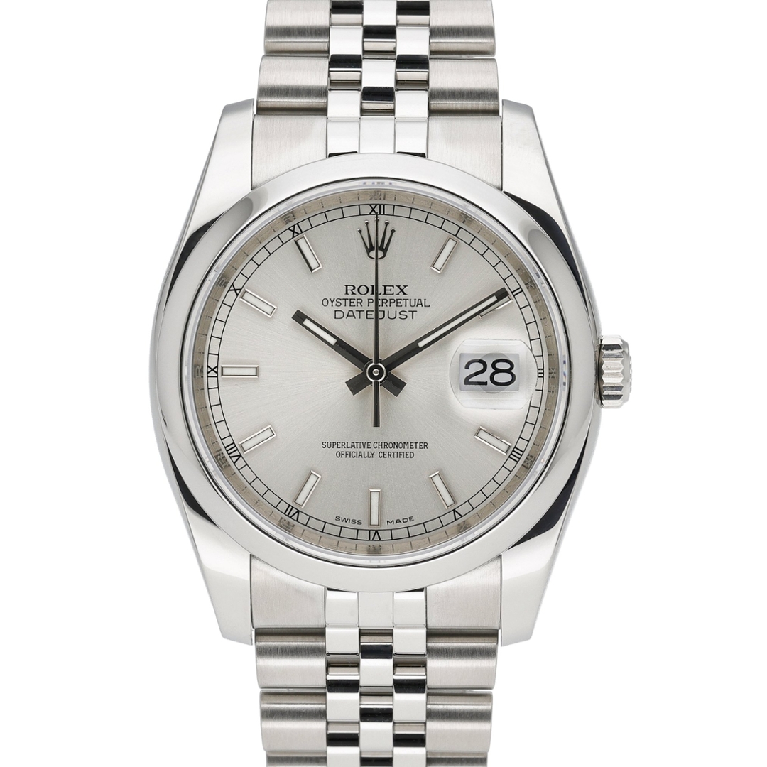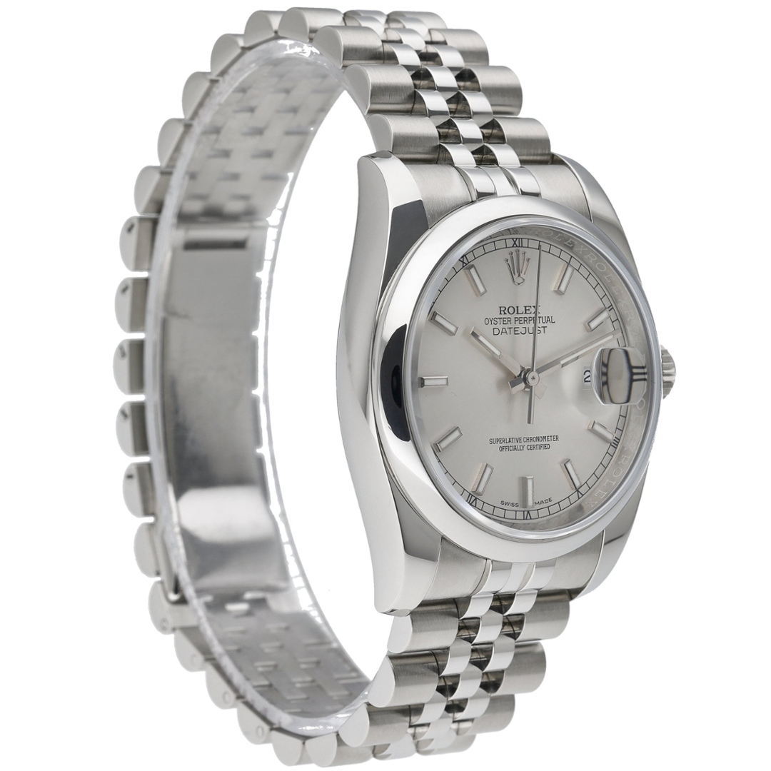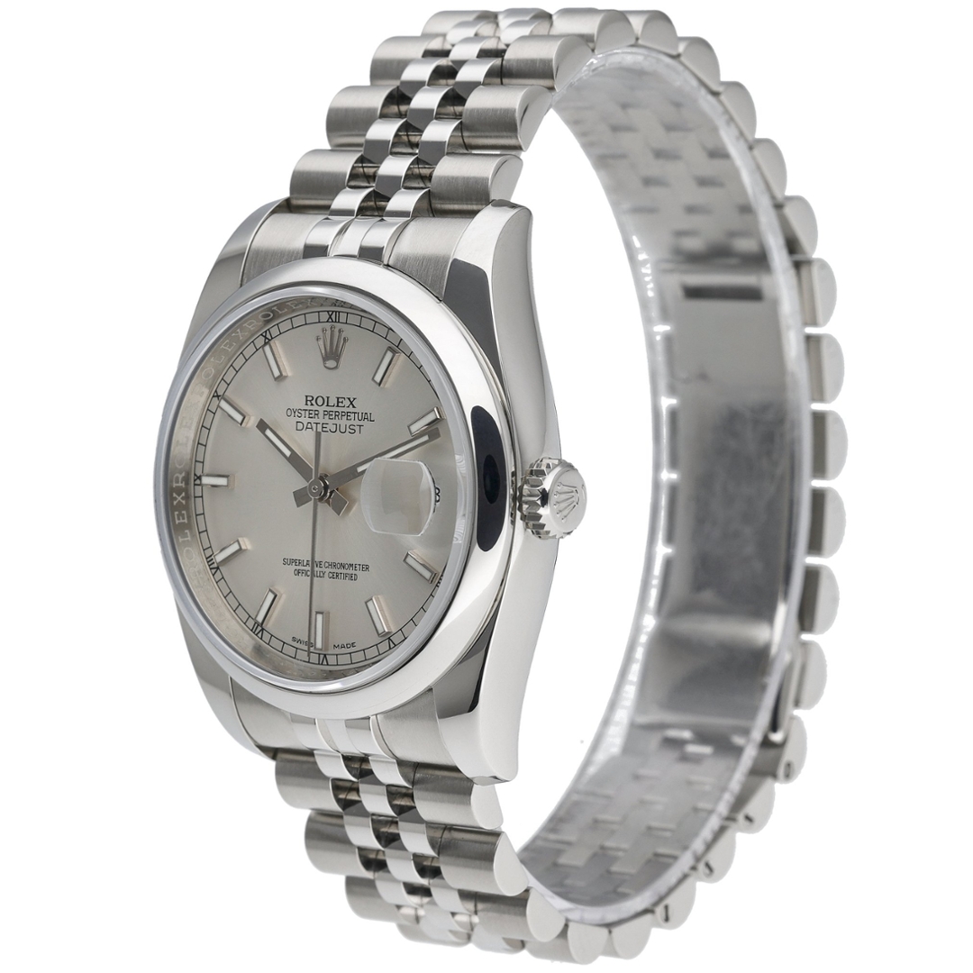 A Rolex Datejust 36 Watch, Stainless Steel on a Silver Dial
